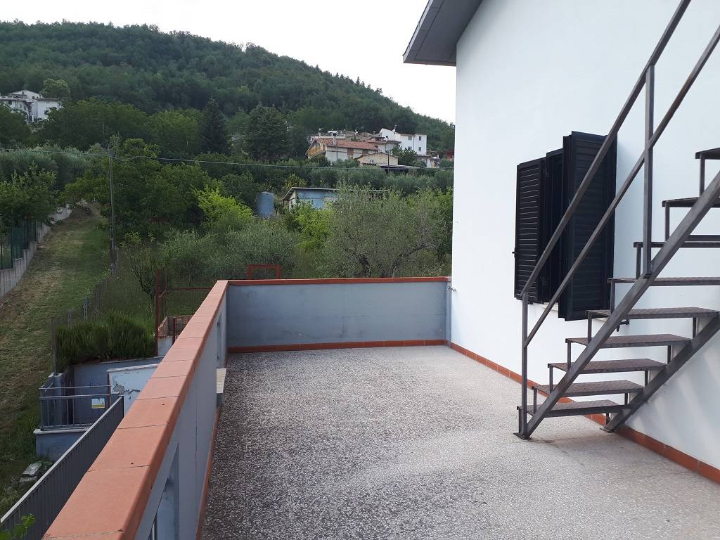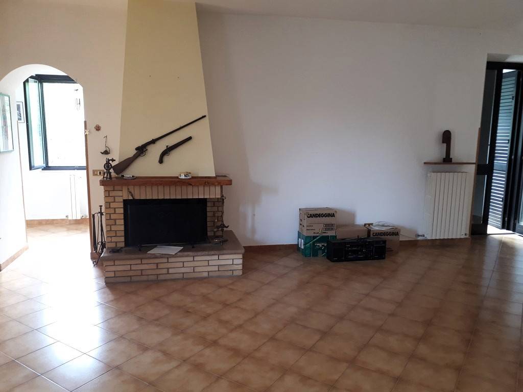 Civitella del Tronto - Nella frazione Rocche di Civitella lungo Via Nazionale, proponiamo porzione di bifamiliare in vendita con area privata e terreno attiguo. La proprietà è composta da locali al piano terra adibiti a taverna con termocamino, co...