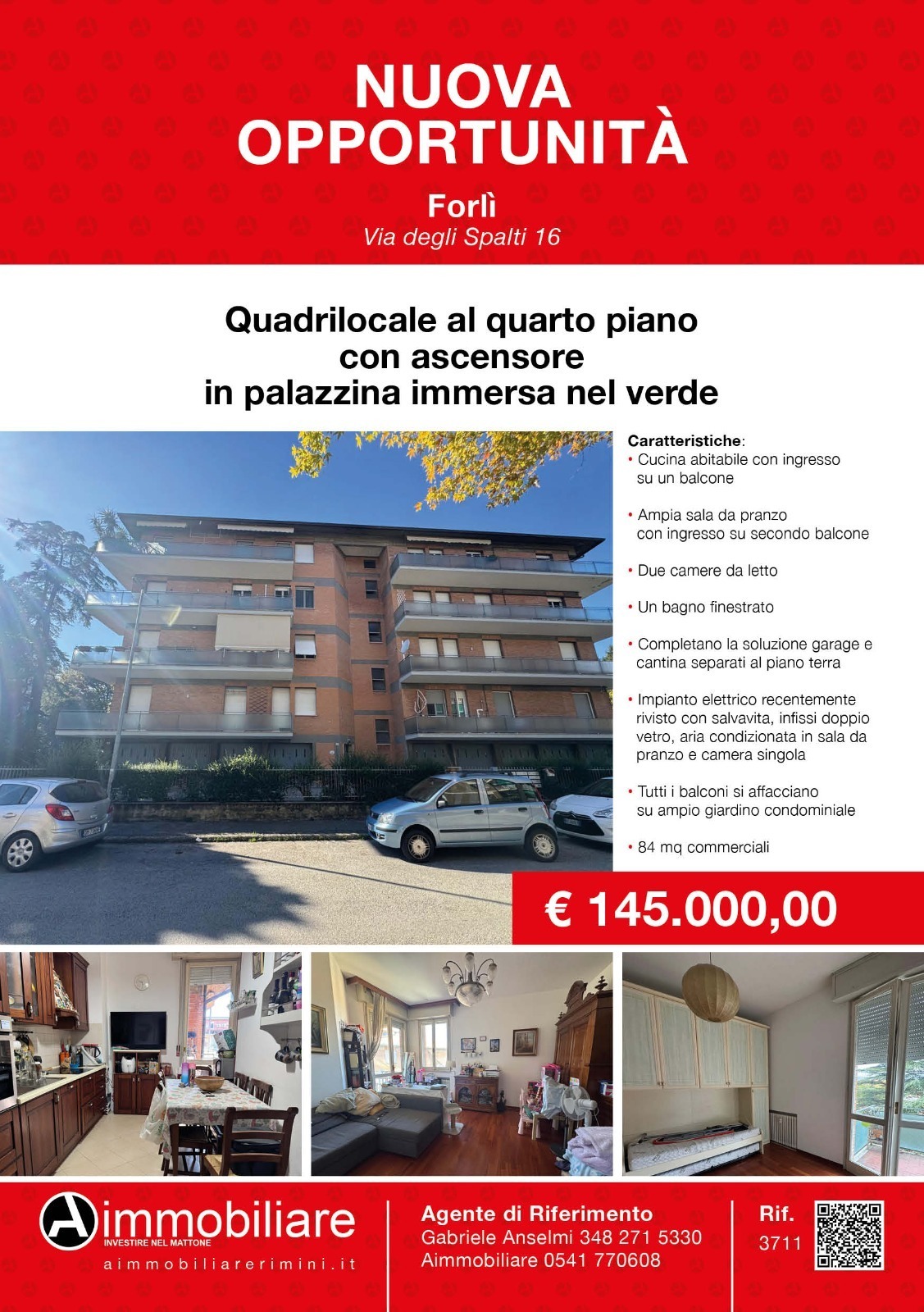 In Vendita quadrilocale al quarto piano a Forlì in Via Degli Spalti 16 a pochi passi dal centro in condominio tenuto in ottimo stato con ascensore. L'appartamento si compone di:- Cucina abitabile con ingresso su un primo balcone - Ampia sala da pr...