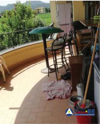 L'abitazione, situata al piano secondo, si compone di un disimpegno, un soggiorno con affaccio su un balcone, un ripostiglio, due camere da letto, un bagno e una cucina, anch'essa con accesso ad un piccolo balcone per una superficie complessiva di...