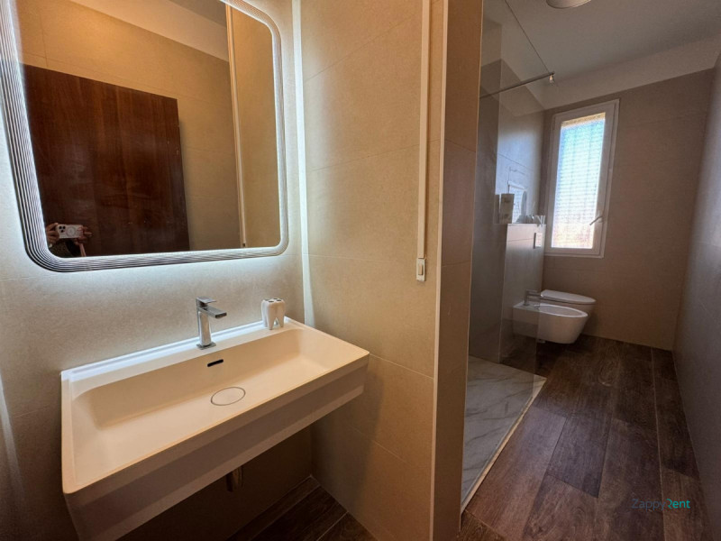 Zappyrent propone un luminoso bilocale di 70 m² al piano terra, perfetto per single o coppie in cerca di comfort temporaneo. Composto da 1 spaziosa stanza, 2 bagni, salotto accogliente e cucina attrezzata, con aria condizionata, ascensore e giardi...