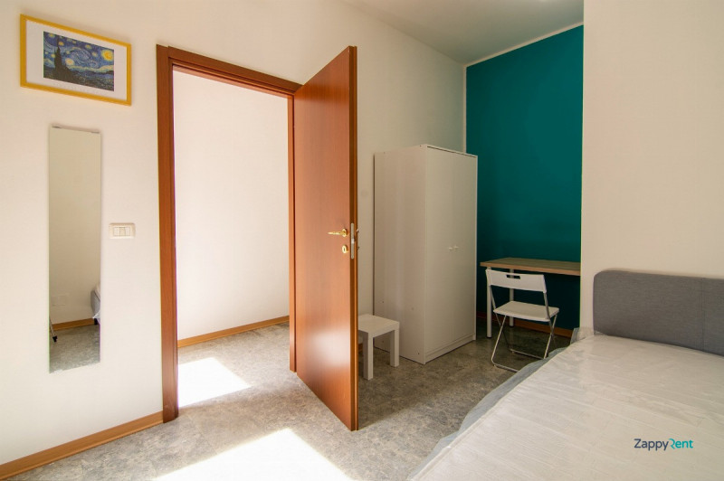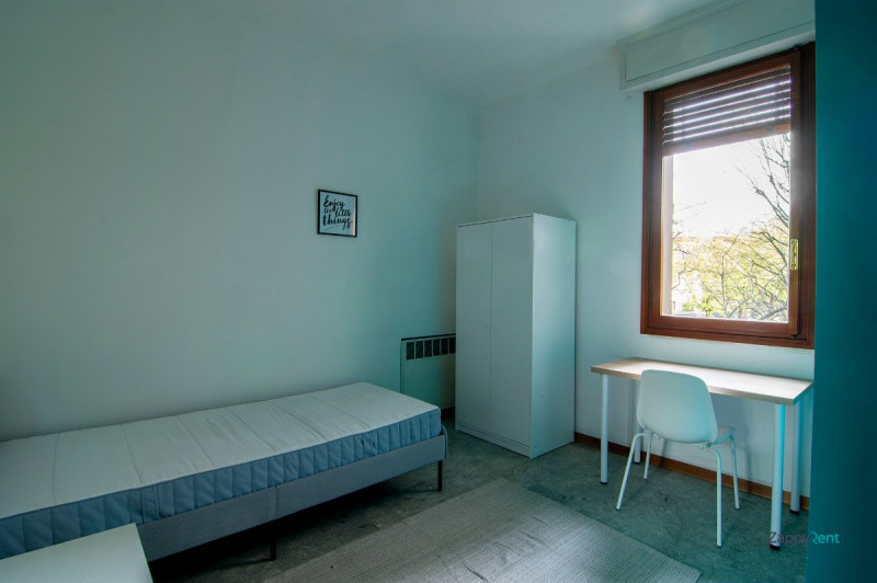 Disponibile una stanza singola in un appartamento-studentato condiviso a soli 400 metri dall'Università Alma Mater di Bologna. La stanza è completamente arredata con scrivania, sedia, armadio, specchio e un letto singolo con doghe in legno e mater...