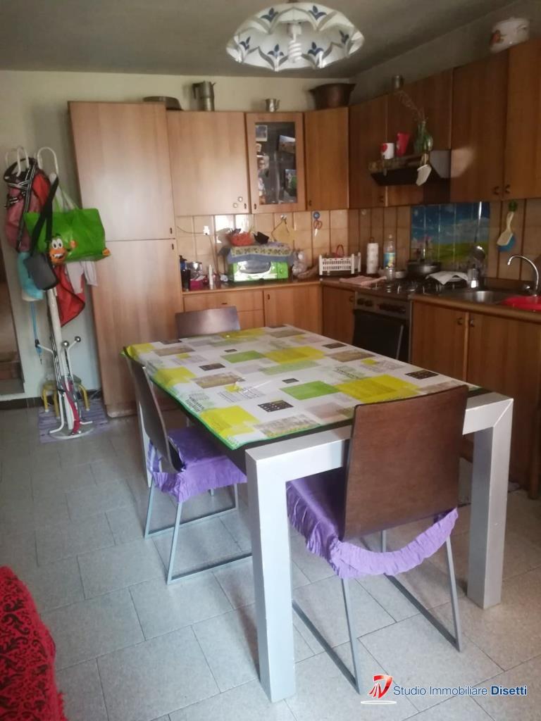 Fabbricato terra cielo disposta su due livelli più soffitta, libera su tre lati, composto al primo piano da soggiorno con angolo cottura, una camera, bagno e due balconi. Completano l'unità due cantine al piano terra.