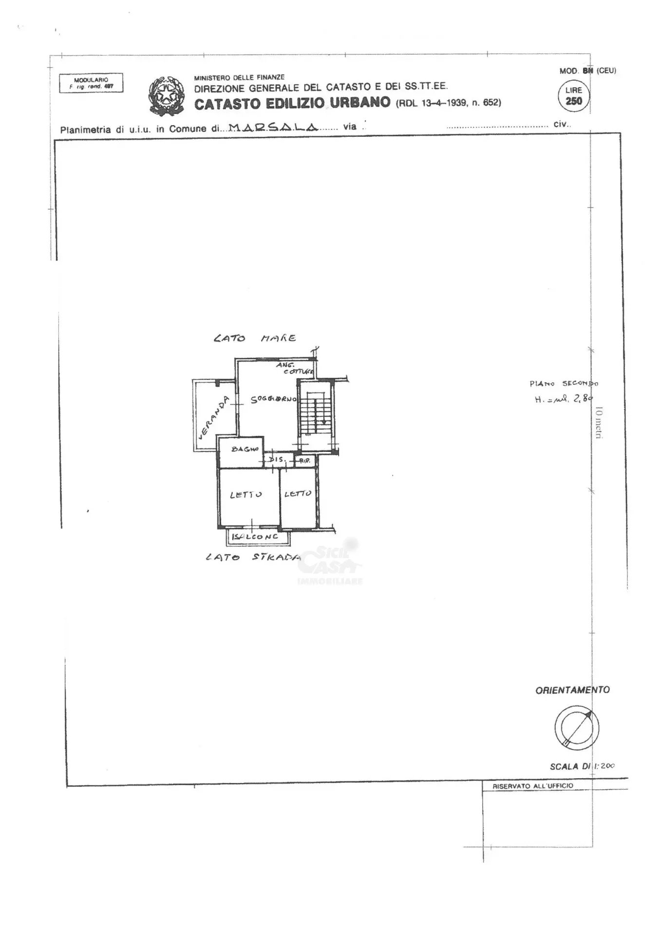 Destinazione ufficio vendesi a Marsala, zona centro, posizione fronte strada, con vista mare, Appartamento con destinazione d'uso ufficio, posto al piano 1 di uno stabile condominiale, composto da 4 vani oltre accessori, per mq. 160' circa, olt...