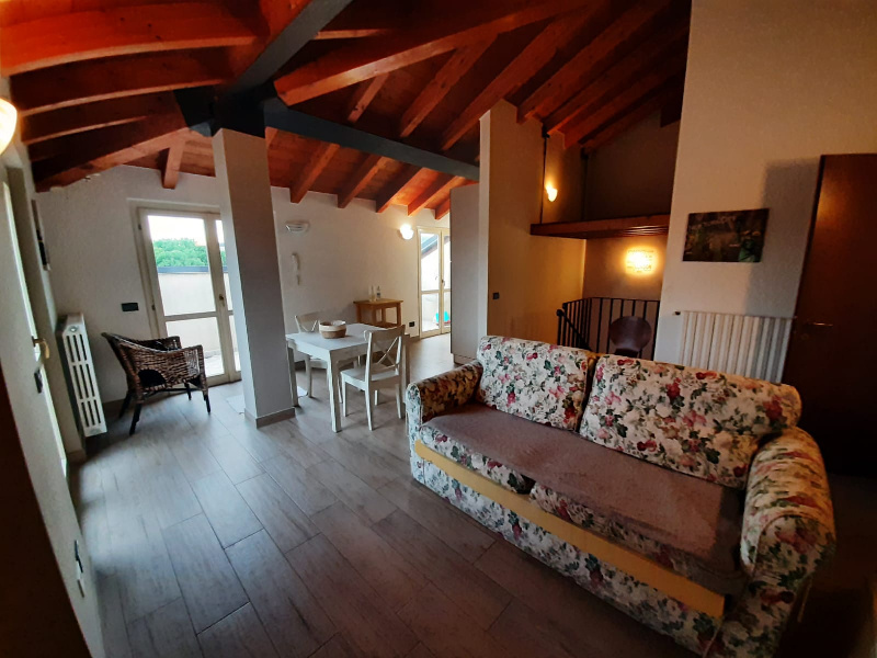 SAN FELICE DEL BENACO - APPARTAMENTO ATTICO - Secondo ed ultimo piano di casa di corte del centro storico di 80 mq. Grande loggia abitabile di 24 mq, ingresso, cucina abitabile, salotto con zona pranzo, disbrigo, bagno e due camere da letto. Dal d...