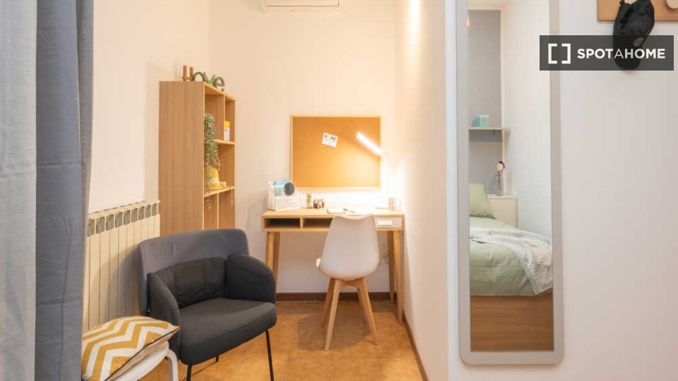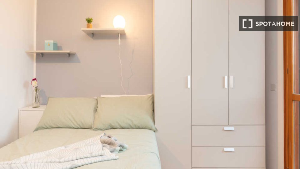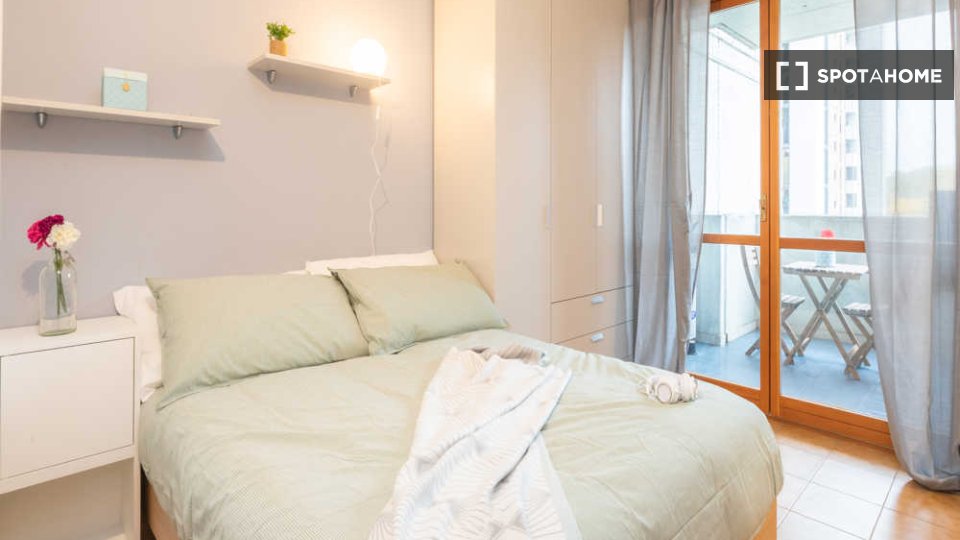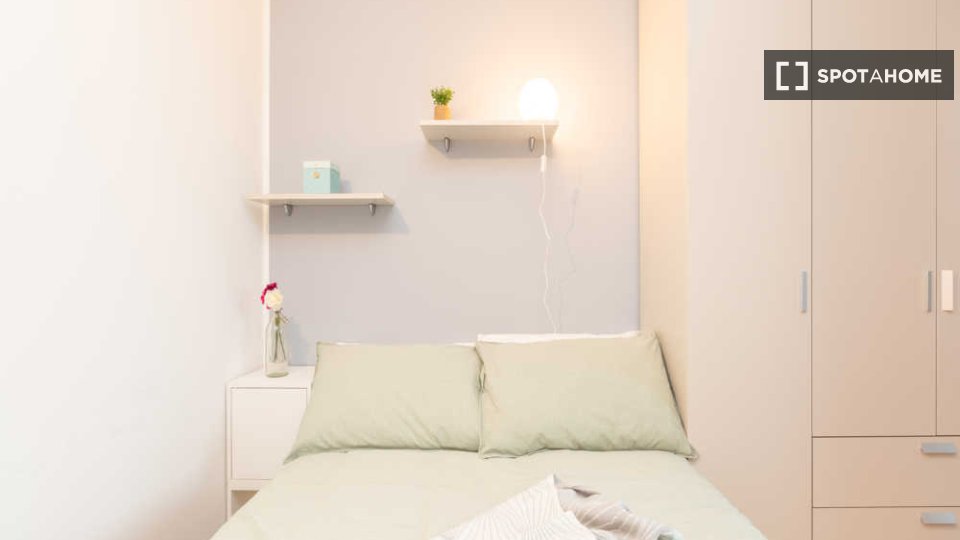 Questa è una stanza in un appartamento condiviso con 6 camere da letto situato a Greco, Milano. L'immobile è completamente arredato e dispone di una cucina attrezzata. Le coppie non sono ammesse; solo professionisti e studenti possono affittare qu...