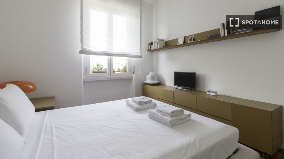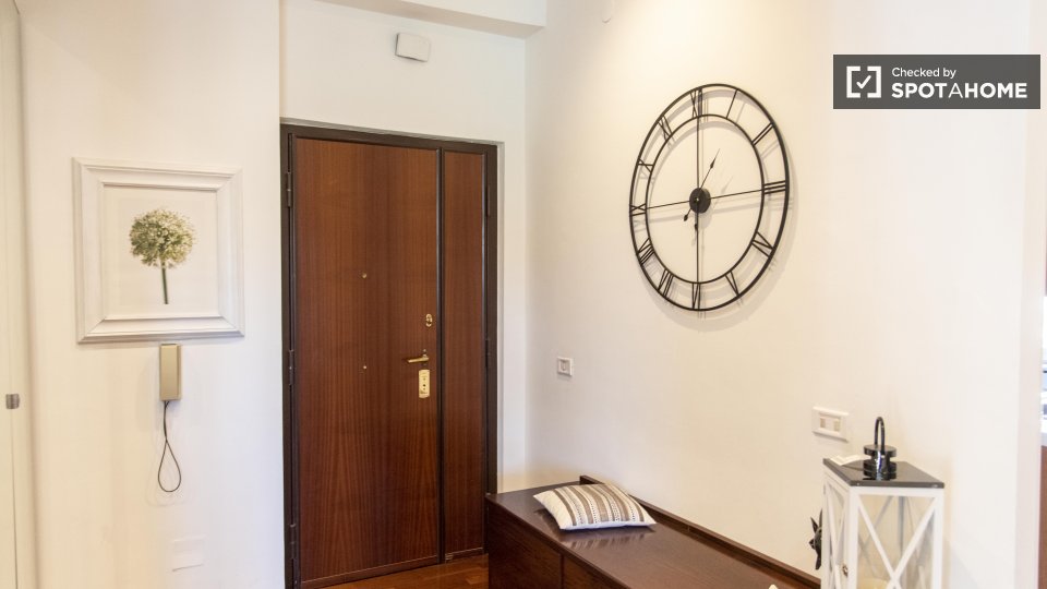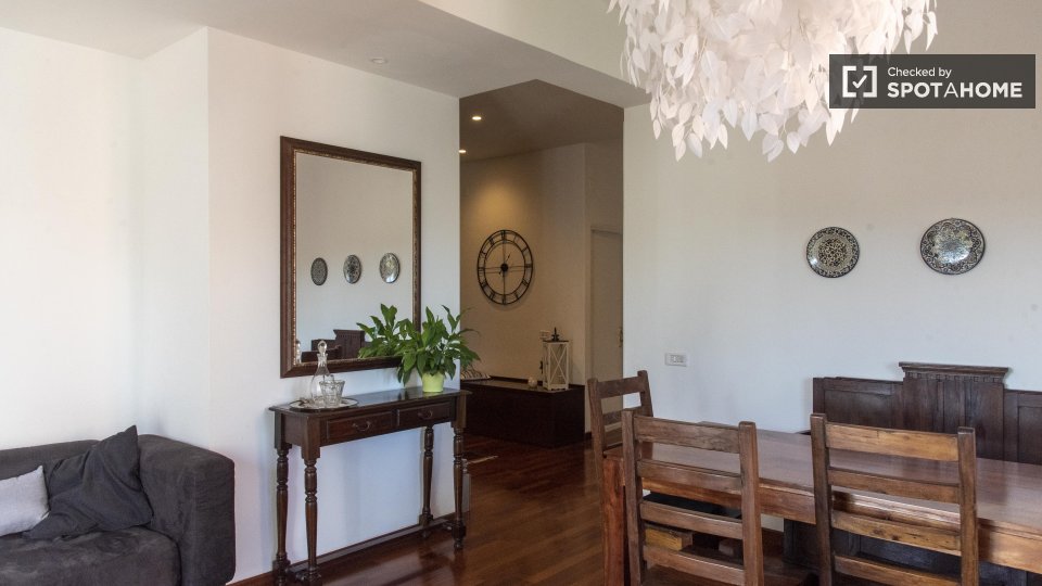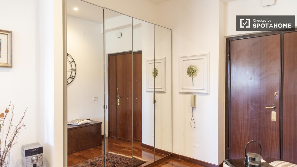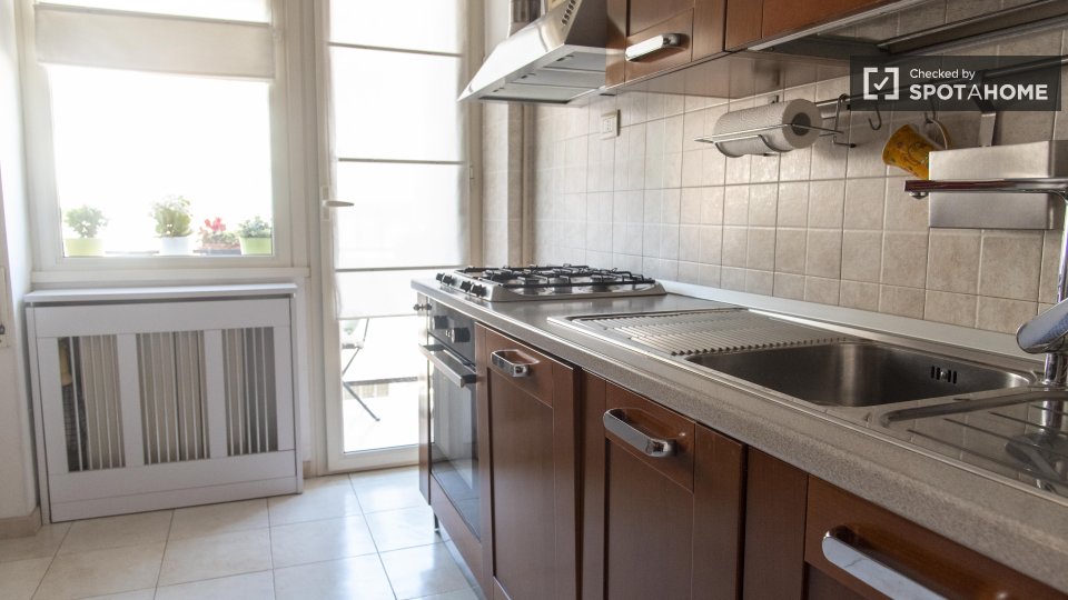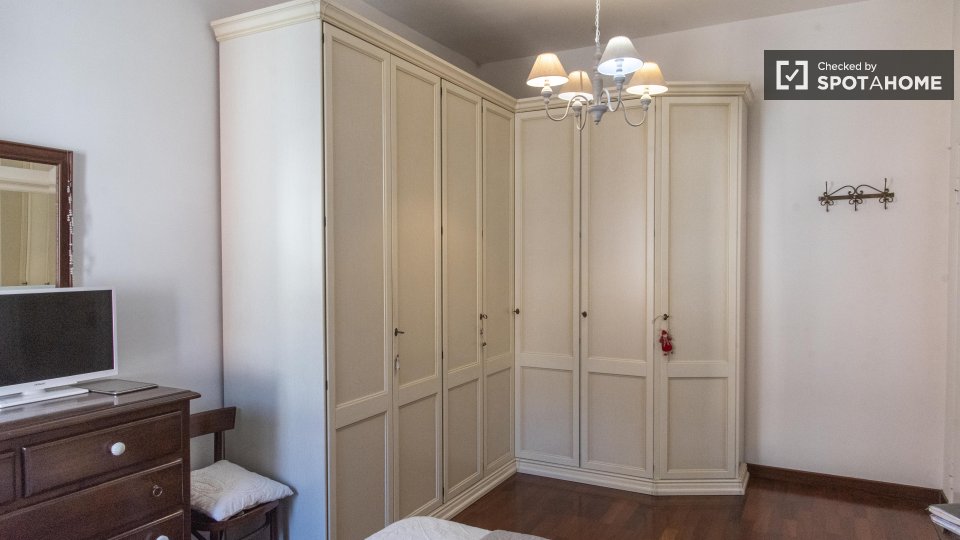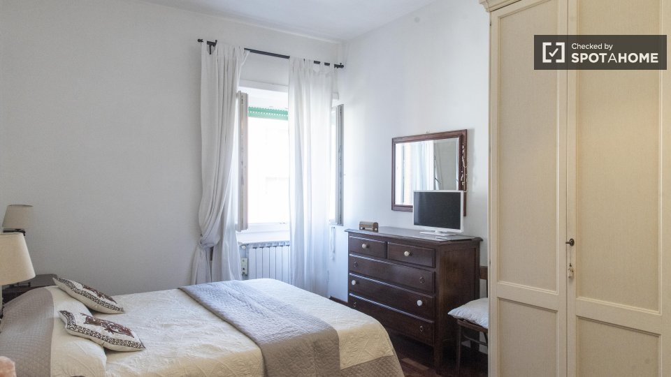 Stanze in affitto in appartamento condiviso a Roma. L'immobile si trova al 4° piano di un palazzo con ascensore. Include terrazza. Importante: - La padrona di casa vive nella proprietà.