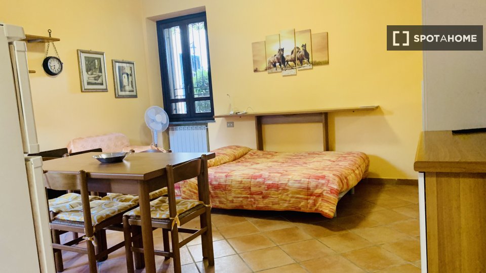 Questo appartamento con una camera da letto a La Pisana, verificato da Spotahome, offre una zona giorno arredata con WiFi incluso, balcone e aria condizionata individuale. La cucina completamente attrezzata è dotata di lavastoviglie e forno, garan...