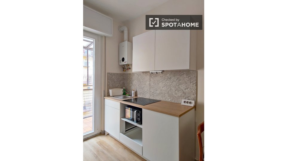 Affittasi monolocale arredato in Viale Coni Zugna. L'immobile si trova al primo piano di una palazzina senza ascensore.