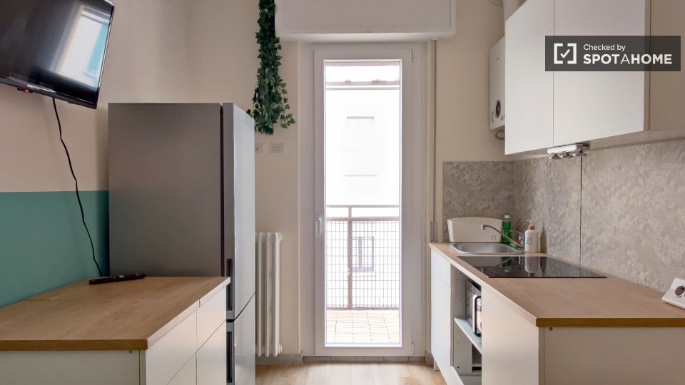 Questo appartamento completamente arredato con una camera da letto a Lodi-Corvetto, Milano, è ideale per chiunque. Include una cucina attrezzata, una TV e tutte le utenze sono incluse. La biancheria da letto è inclusa e il servizio di pulizia peri...