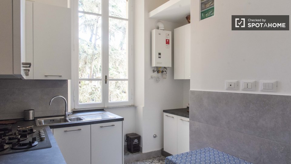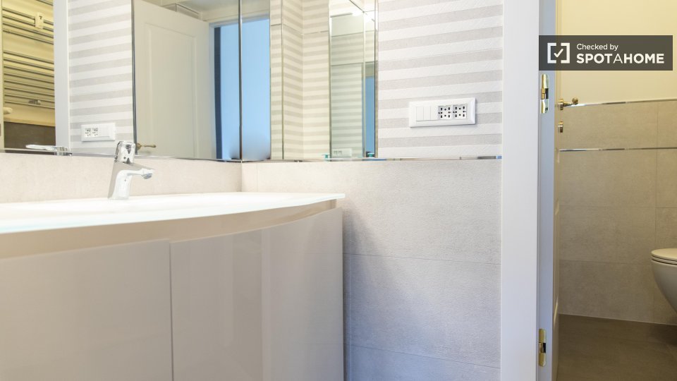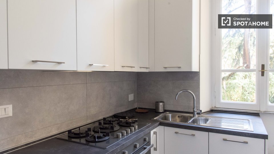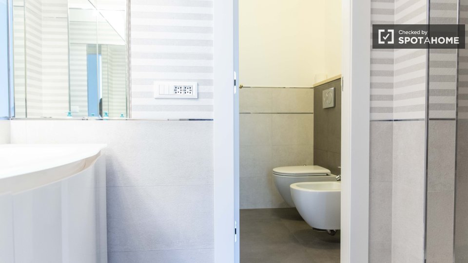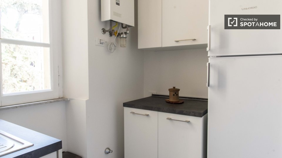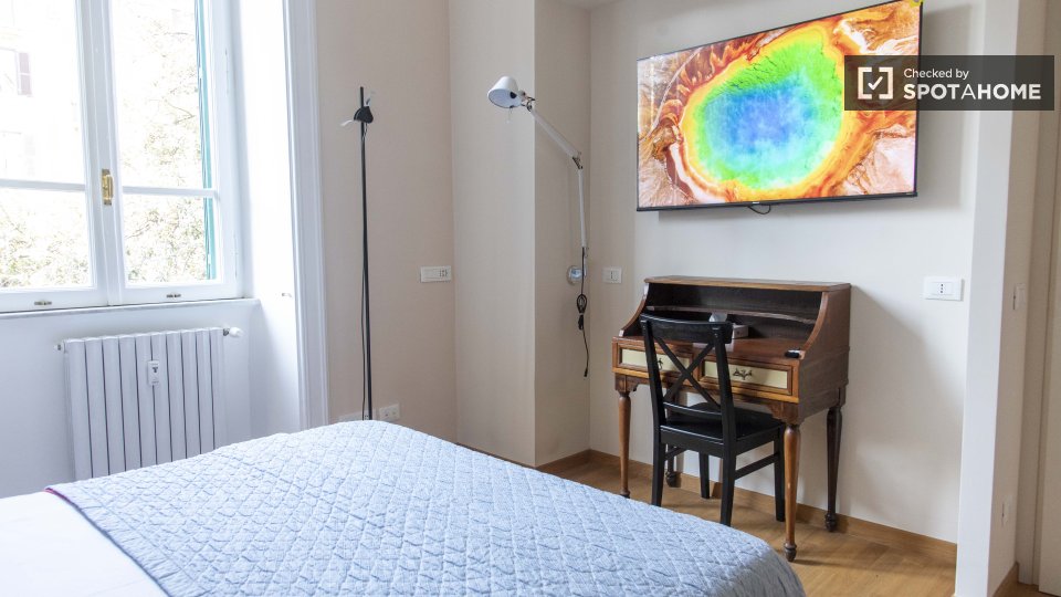 Le camere con bagno privato sono disponibili per l'affitto in un appartamento con 2 camere da letto a Roma. Questa proprietà sembra luminosa e ha soffitti alti che fanno sembrare la sua area di 75 m² molto spaziosa. L'appartamento è molto elegante...
