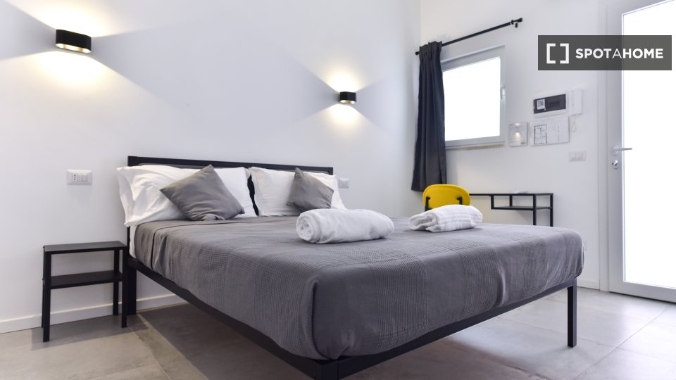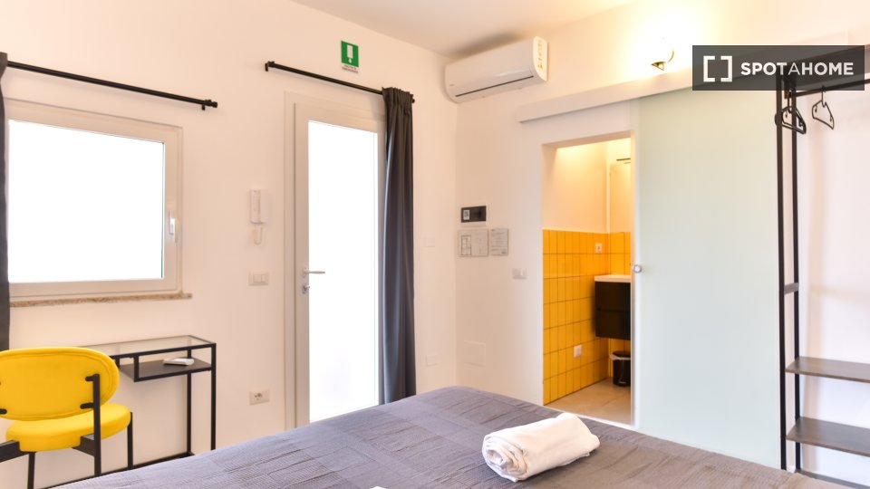 Questo elegante monolocale al Pigneto è perfetto per professionisti, studenti, studenti Erasmus e coppie. È completamente arredato, dotato di aria condizionata centralizzata e balcone. Le utenze di elettricità, acqua, gas e Wi-Fi sono incluse nell...