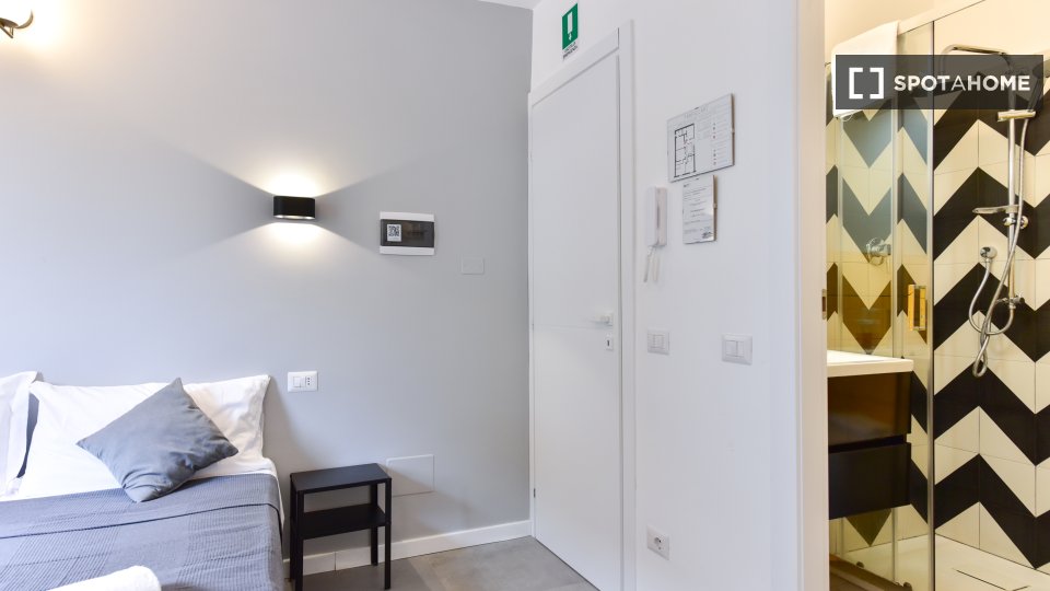 Questo monolocale completamente arredato al Pigneto offre aria condizionata centralizzata e servizio di pulizia periodica a pagamento. Verificato da Spotahome, questo accogliente spazio è adatto a professionisti e studenti, comprese le coppie. Tut...
