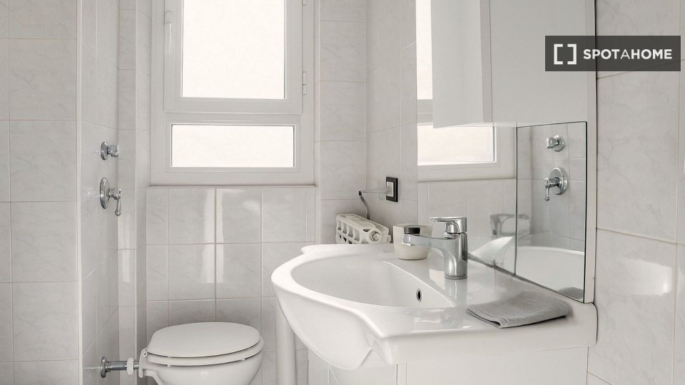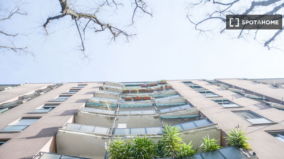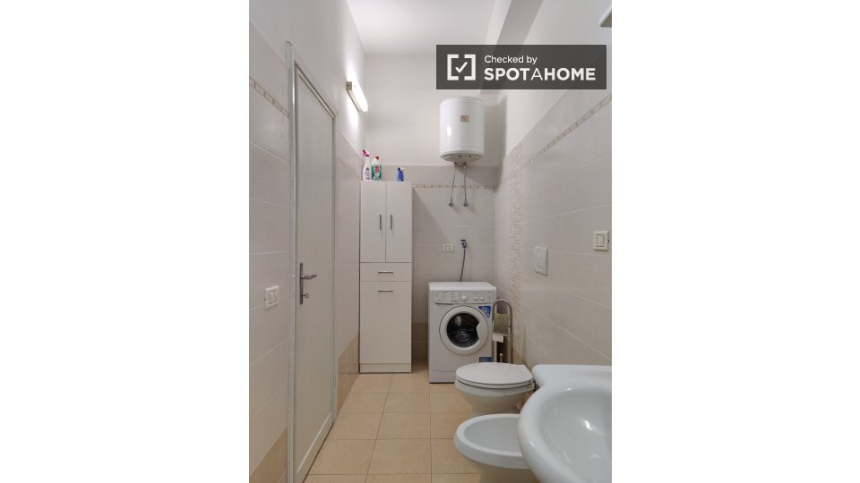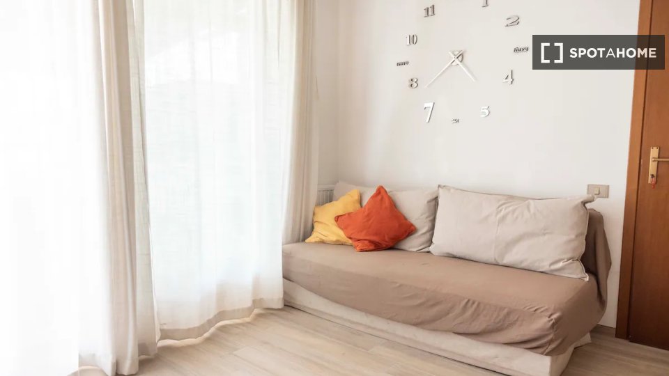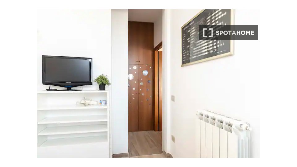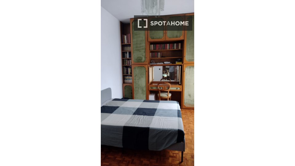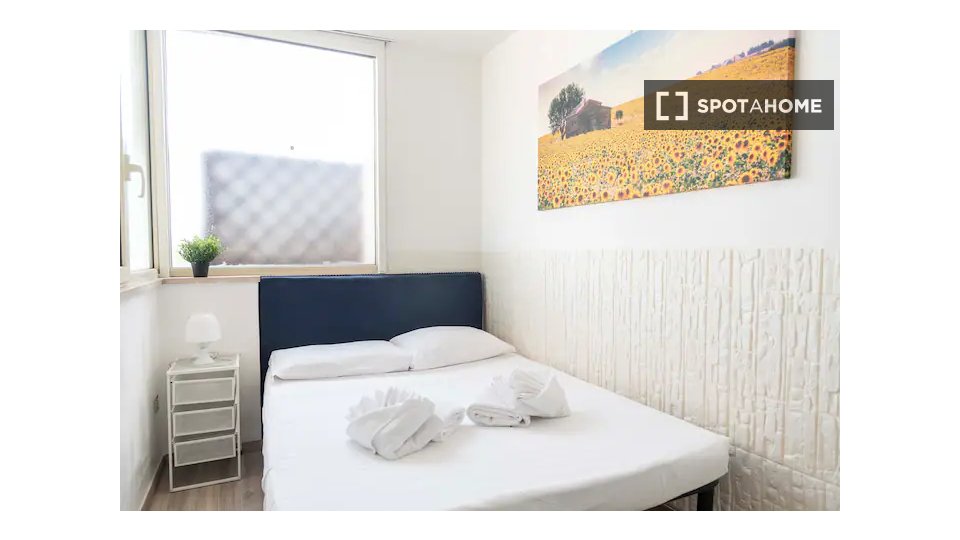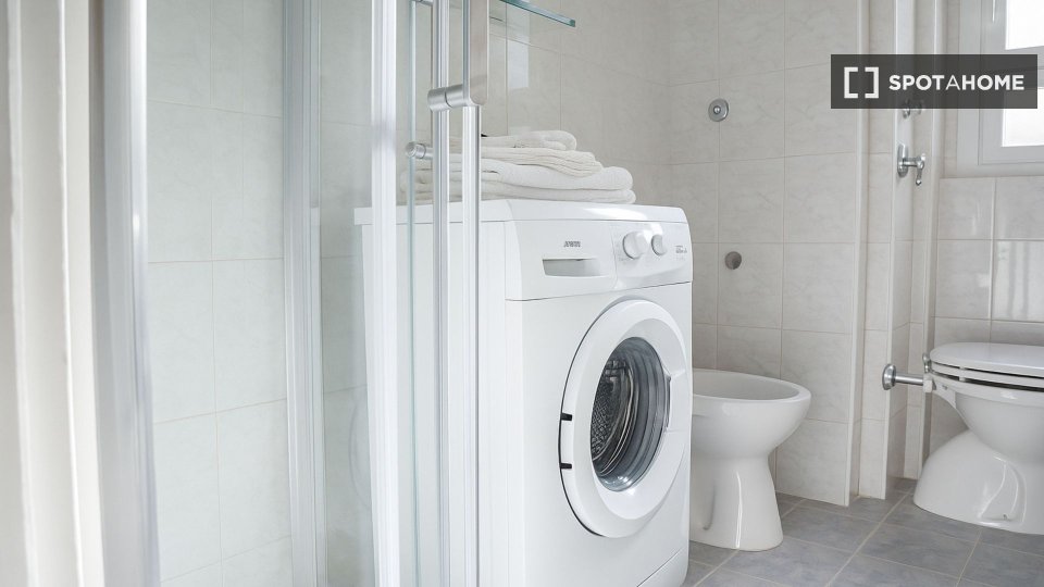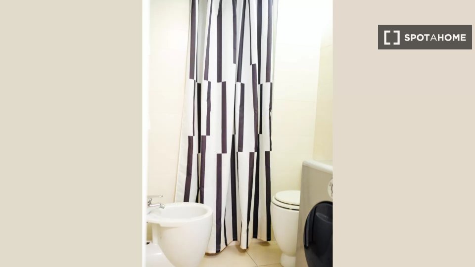 Questa camera in un appartamento condiviso con 3 camere da letto offre un'esperienza abitativa confortevole e ben arredata. L'appartamento è dotato di aria condizionata individuale e di un balcone per una maggiore comodità. La cucina attrezzata è ...