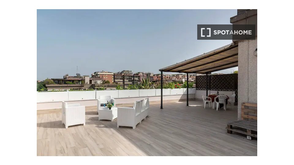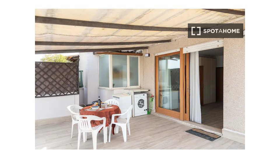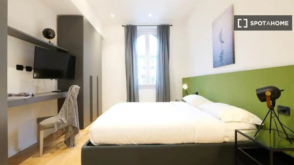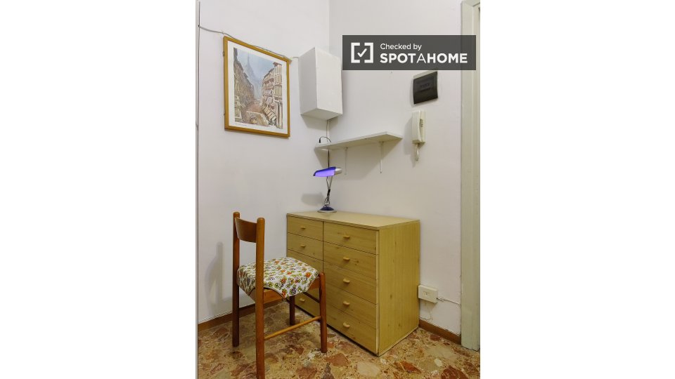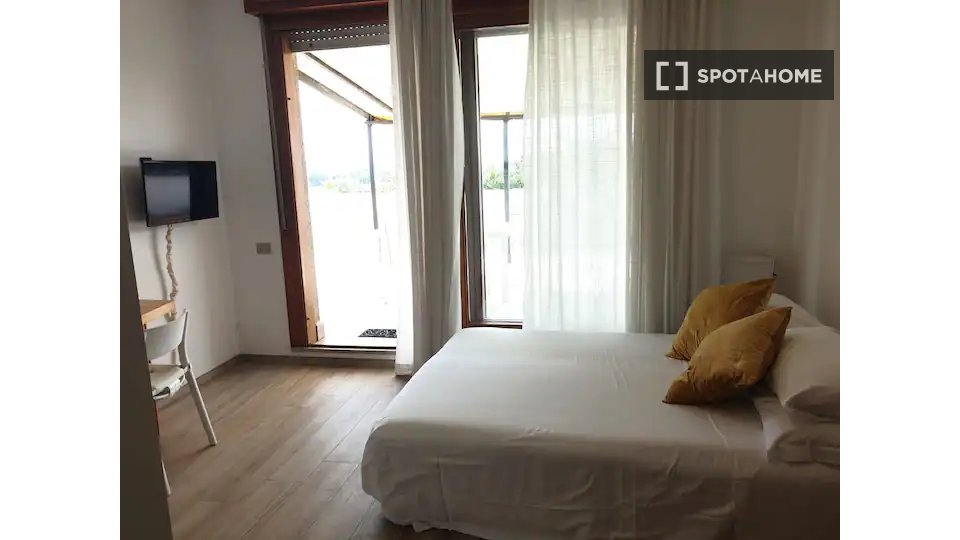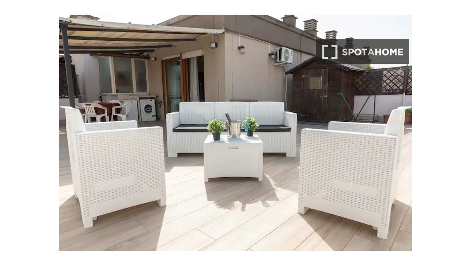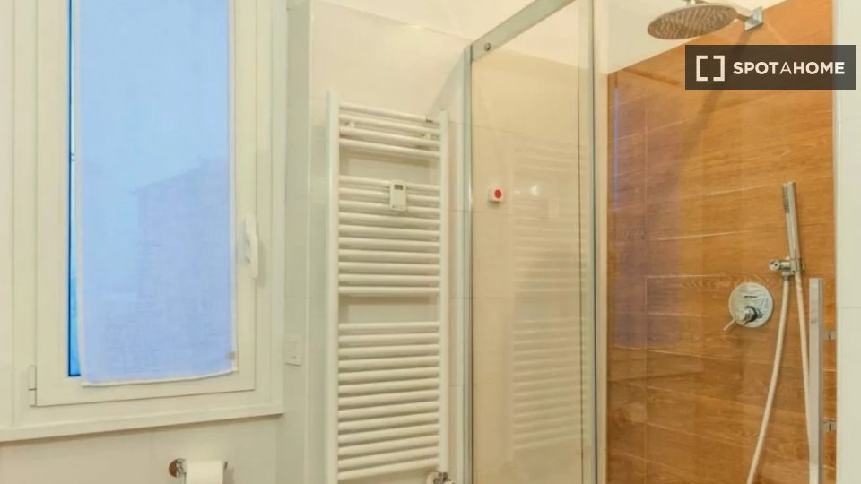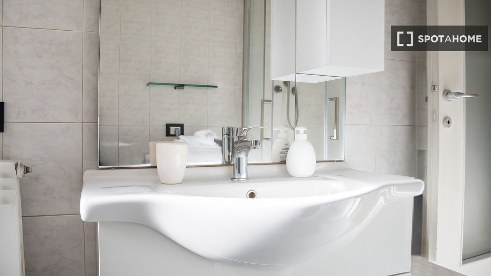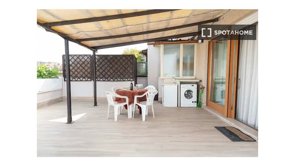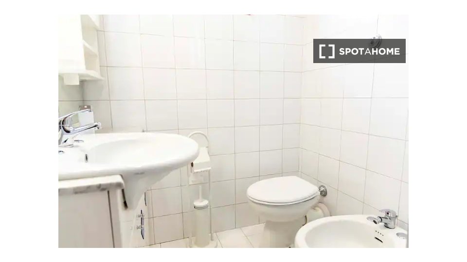 Questa camera in un appartamento condiviso con 3 camere da letto offre un'esperienza abitativa confortevole e ben arredata. L'appartamento è dotato di aria condizionata individuale e di un balcone per una maggiore comodità. La cucina attrezzata è ...