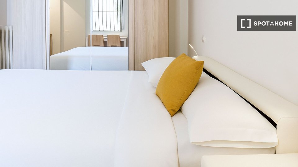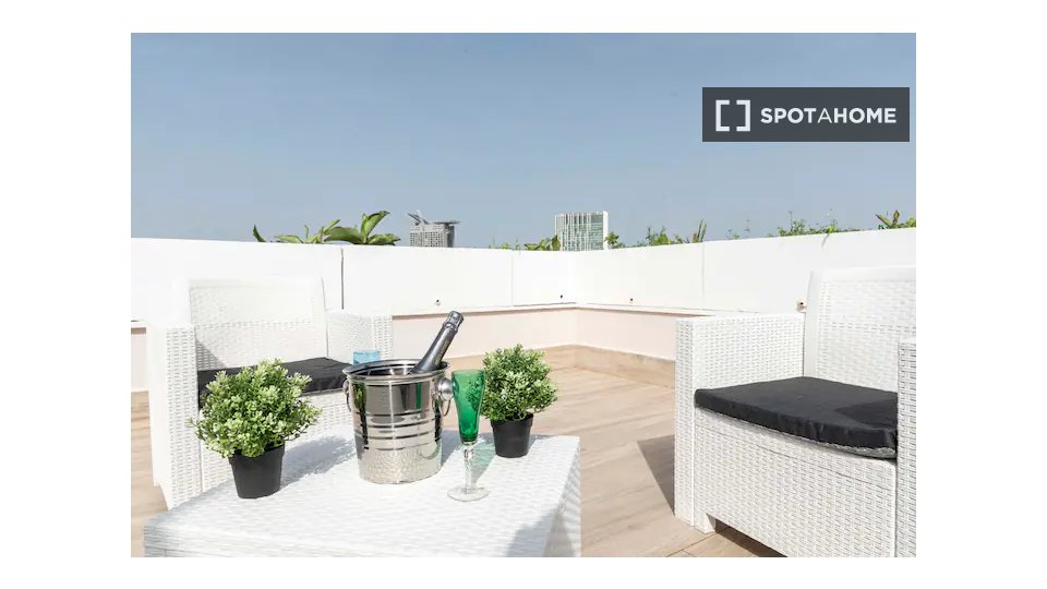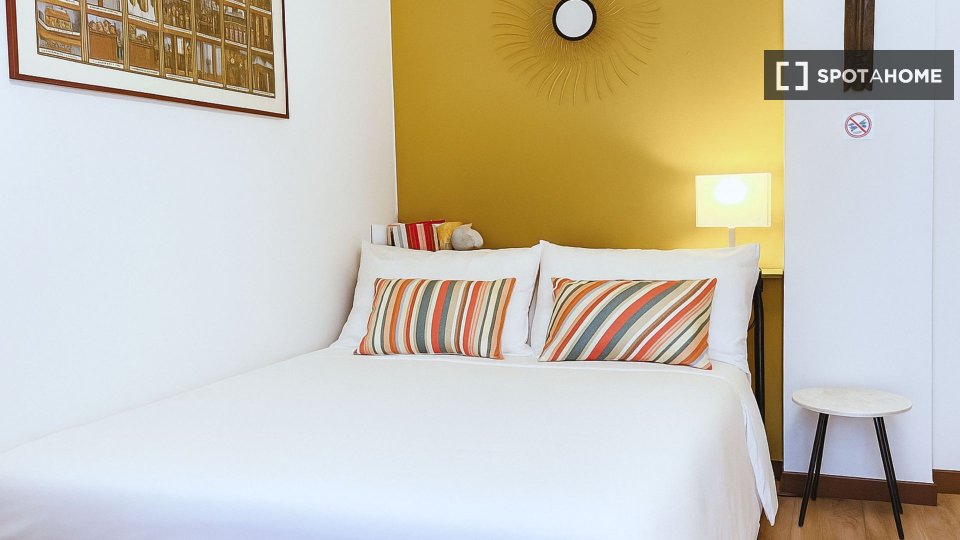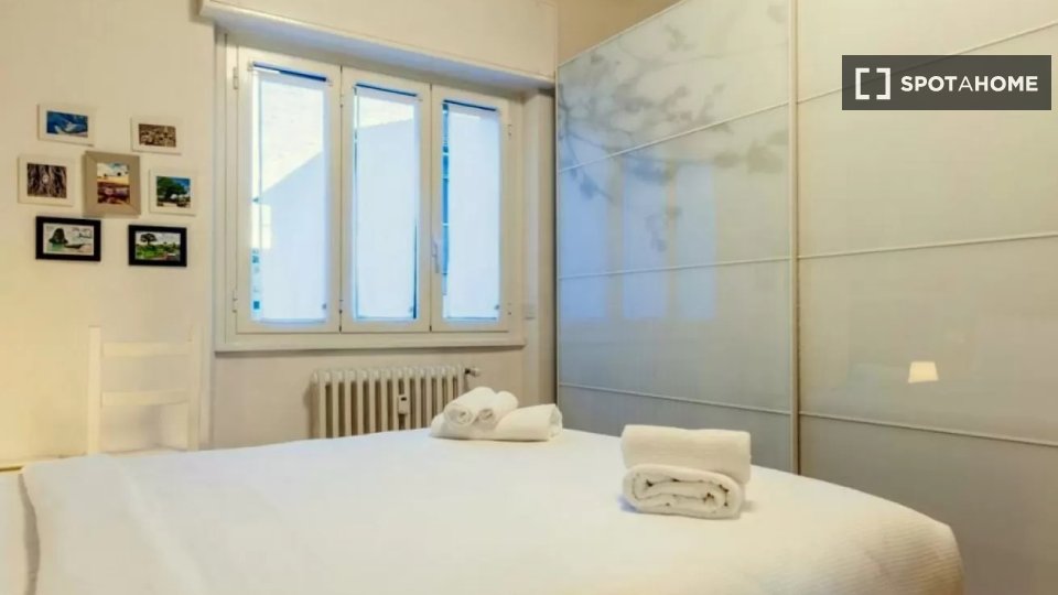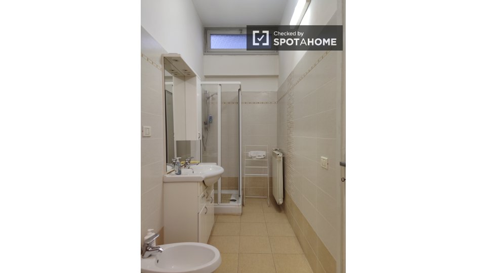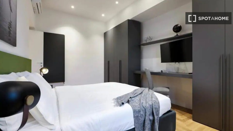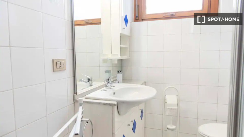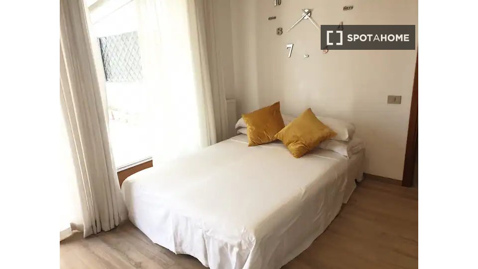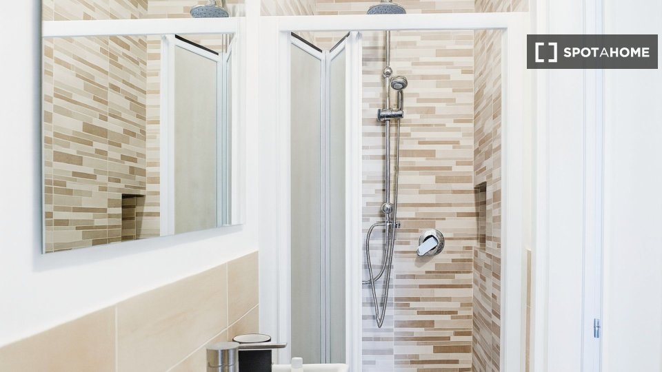 Questa camera in un appartamento condiviso con 3 camere da letto offre un'esperienza abitativa confortevole e ben arredata. L'appartamento è dotato di aria condizionata individuale e di un balcone per una maggiore comodità. La cucina attrezzata è ...