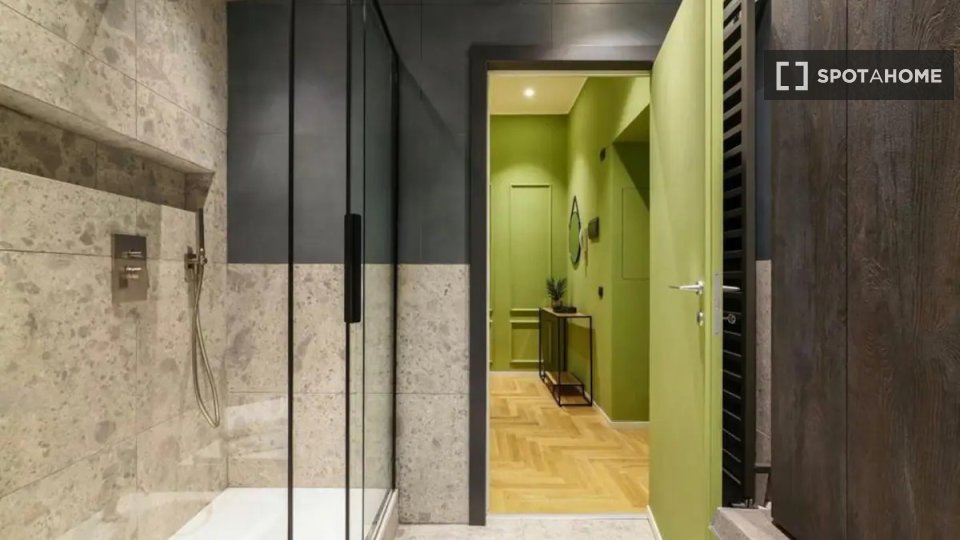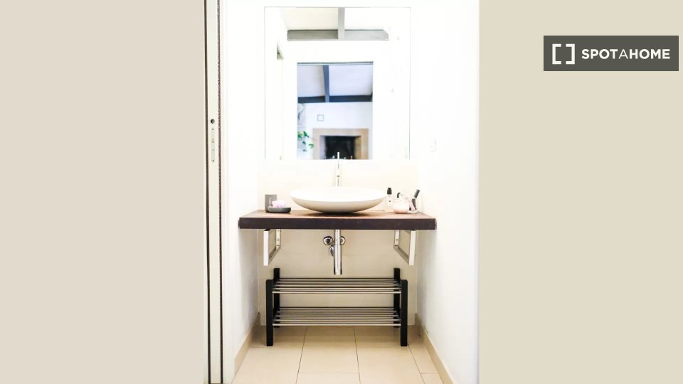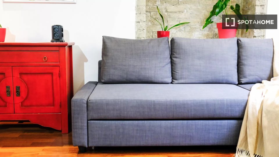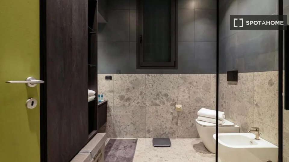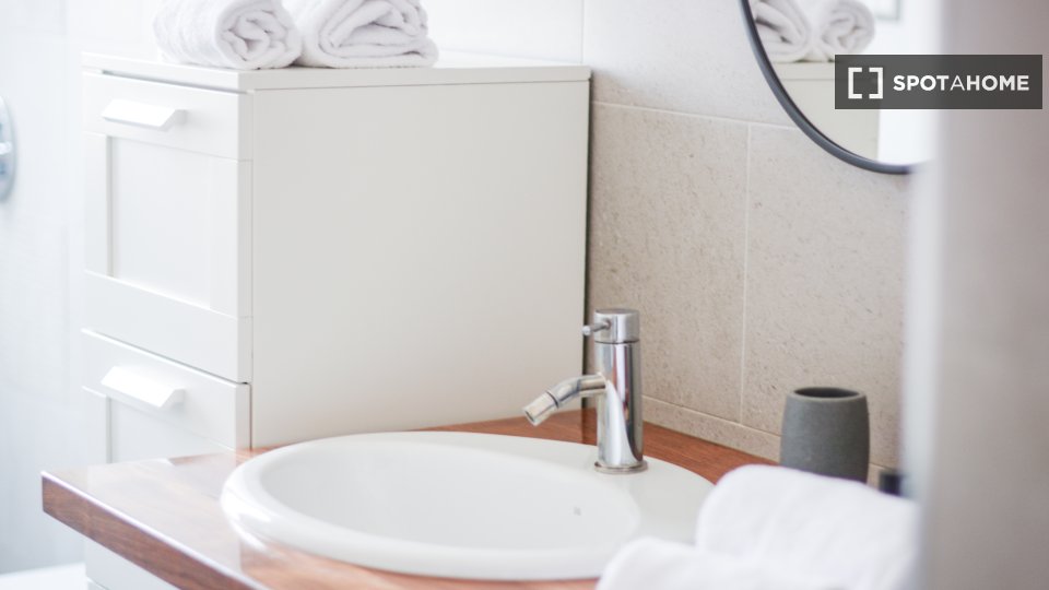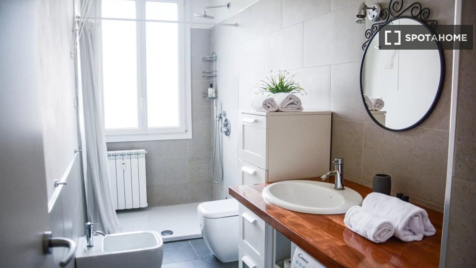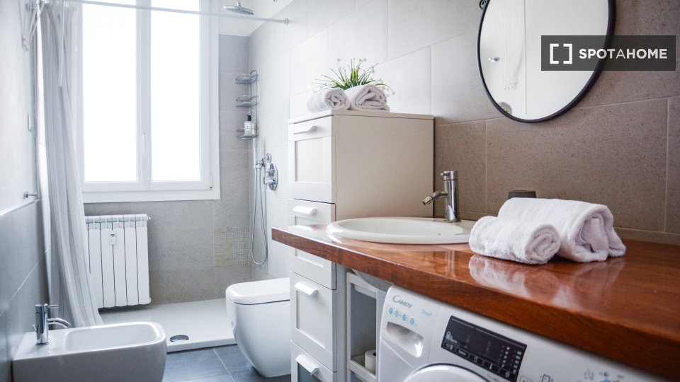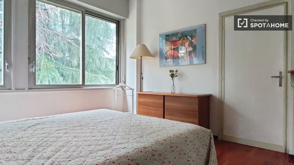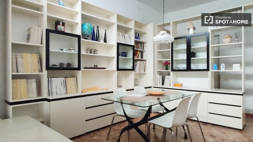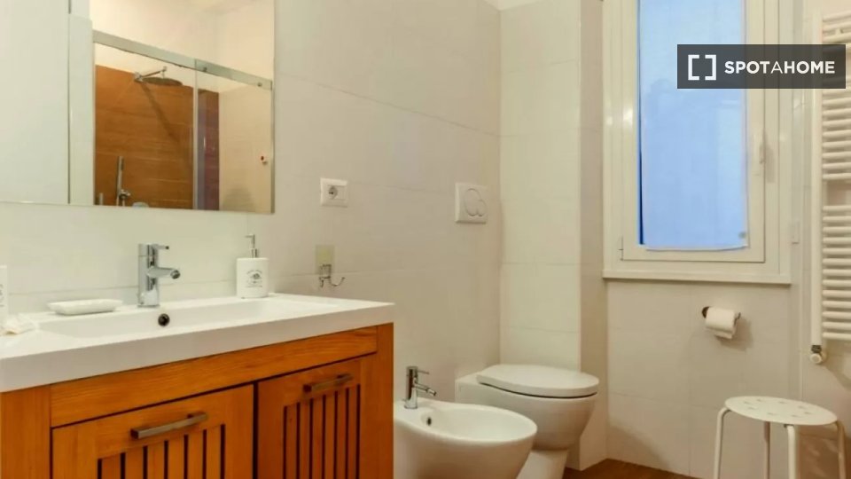 Questa camera in un appartamento condiviso con 3 camere da letto offre un'esperienza abitativa confortevole e ben arredata. L'appartamento è dotato di aria condizionata individuale e di un balcone per una maggiore comodità. La cucina attrezzata è ...