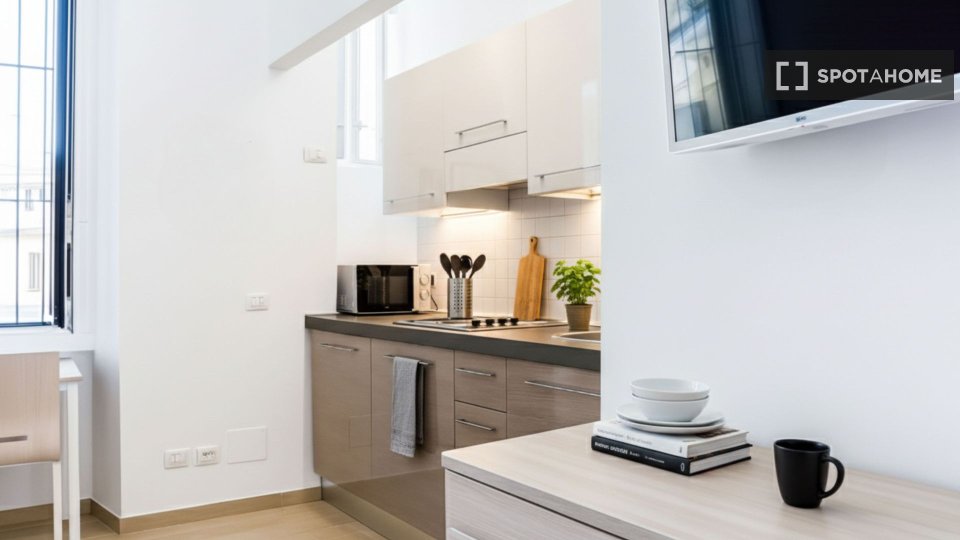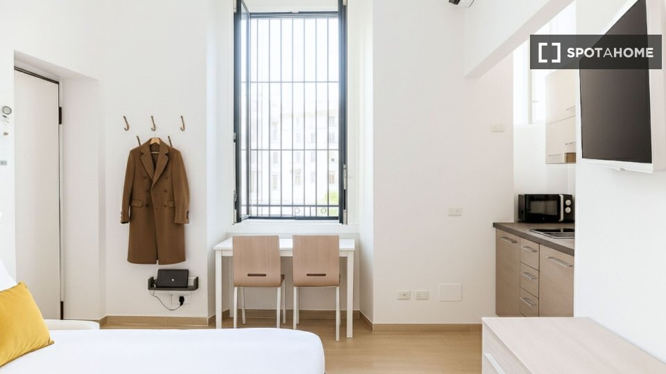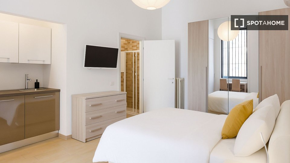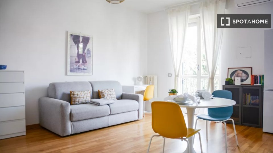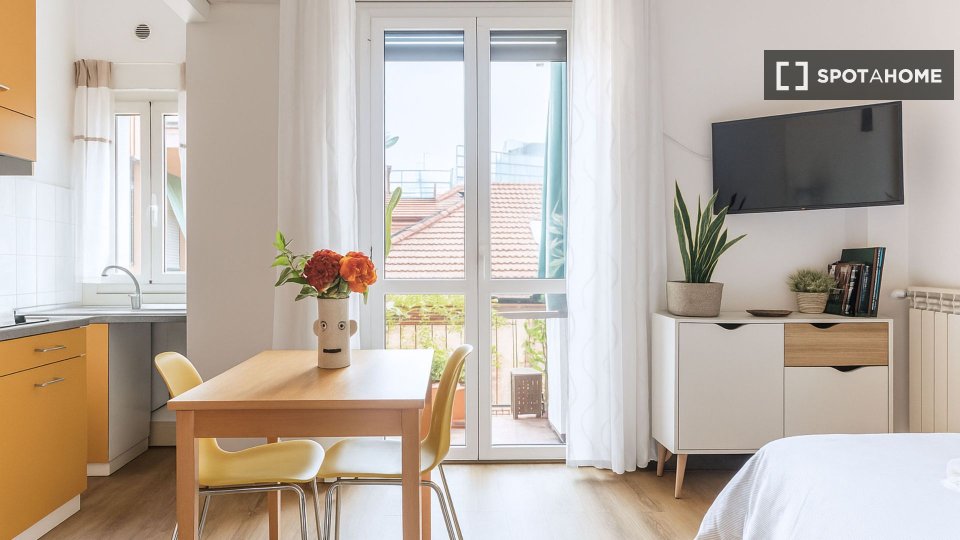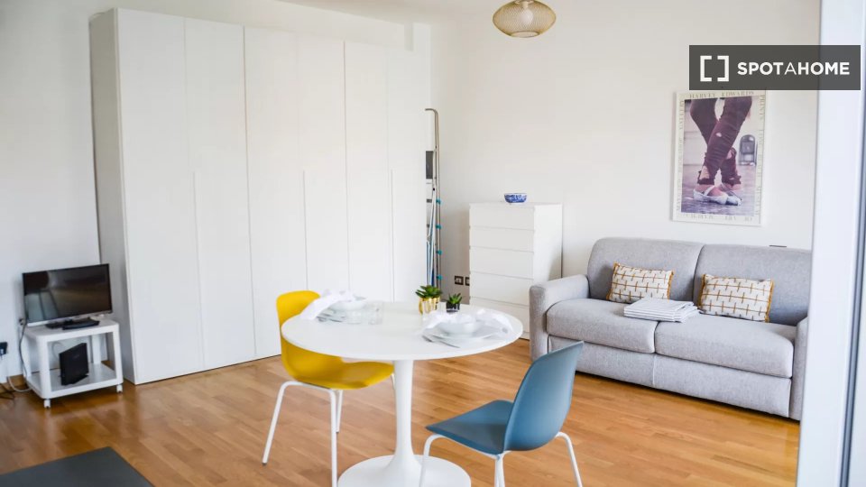 Spotahome presenta questo monolocale arredato situato a Bande Nere, Milano. Il monolocale dispone di cucina completamente attrezzata, lavatrice privata, forno, lavastoviglie e aria condizionata con unità individuali. È consentito fumare all'intern...