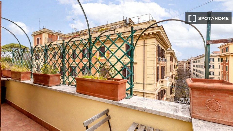 Stanze in affitto in un appartamento con 5 camere da letto a Roma. L'immobile si trova in uno stabile dotato di ascensore. Completa la proprietà balcone.
