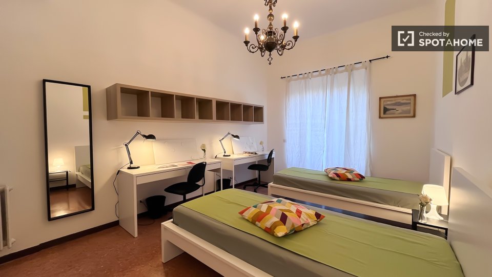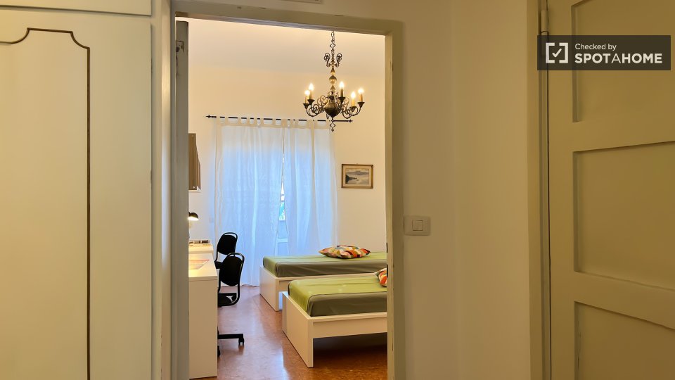Questo appartamento condiviso con 5 camere da letto a Campo di Marte offre un soggiorno confortevole con tutte le spese incluse. L'appartamento è completamente arredato e la cucina è dotata di comfort essenziali, tra cui forno e lavatrice. Profess...