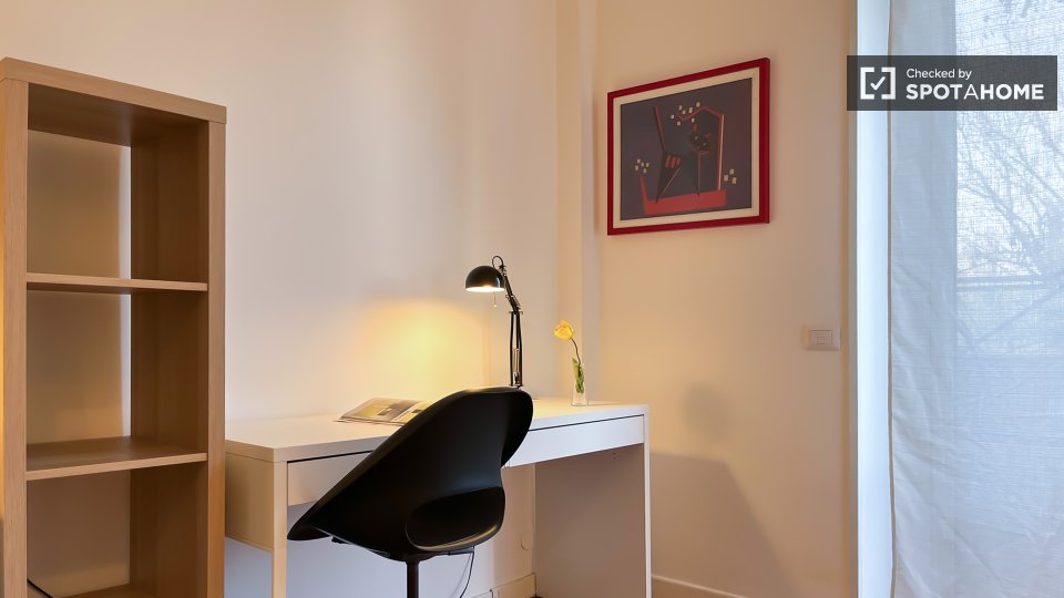 Questa stanza in un appartamento condiviso con 5 camere da letto a Maciachini-Maggiolina, Milano, è disponibile per l'affitto a professionisti e studenti. La stanza si trova in un appartamento splendidamente arredato, dotato di aria condizionata, ...