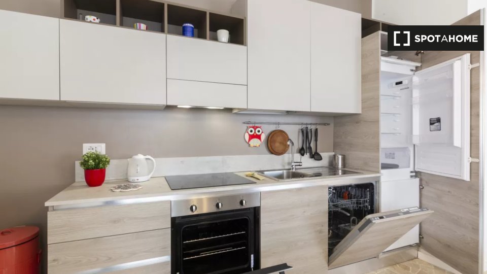Questo appartamento con una camera da letto completamente arredato è perfetto sia per professionisti che per studenti. Dispone di riscaldamento centralizzato, lavatrice privata, TV, ascensore, cucina attrezzata e parcheggio. Tutte le utenze, come ...