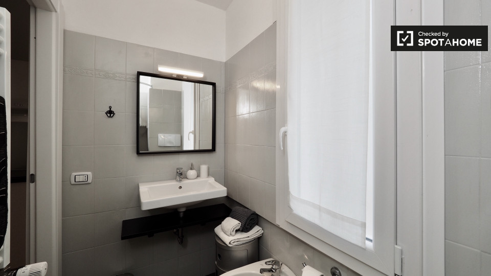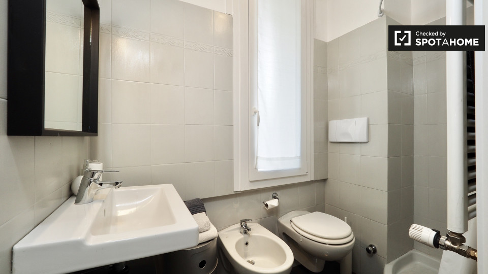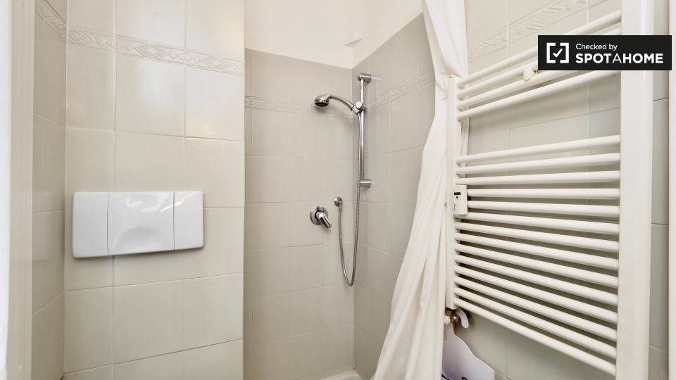 Questa camera splendidamente arredata è disponibile in un appartamento condiviso con 6 camere da letto a Trastevere, Roma. L'appartamento è dotato di riscaldamento centralizzato, balcone e lavatrice privata per una maggiore comodità. È consentito ...