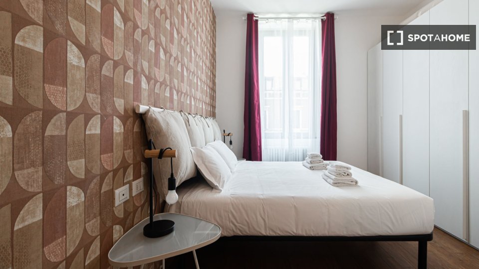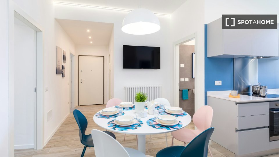 Scopri questo moderno appartamento con 2 camere da letto disponibile in affitto a Mecenate, Milano. L'immobile è completamente arredato e vanta aria condizionata individuale, riscaldamento centralizzato e un delizioso balcone o terrazza per il vos...
