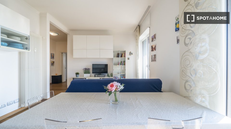 Questo appartamento condiviso con 2 camere da letto si trova a Vimodrone, Milano, e offre sistemazioni completamente arredate. La cucina è ben attrezzata e l'immobile include un balcone. Tutte le utenze essenziali, tra cui elettricità, acqua, gas ...