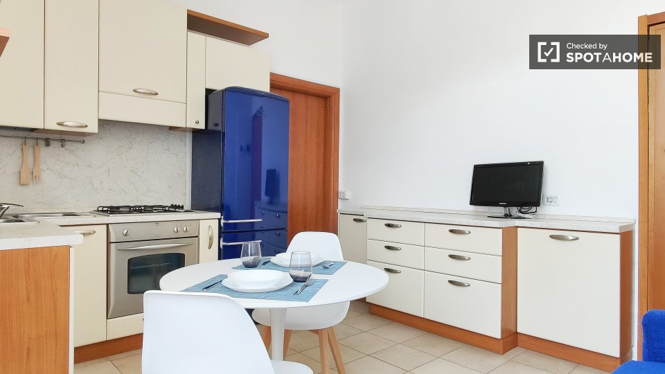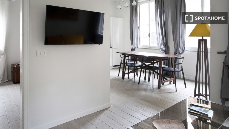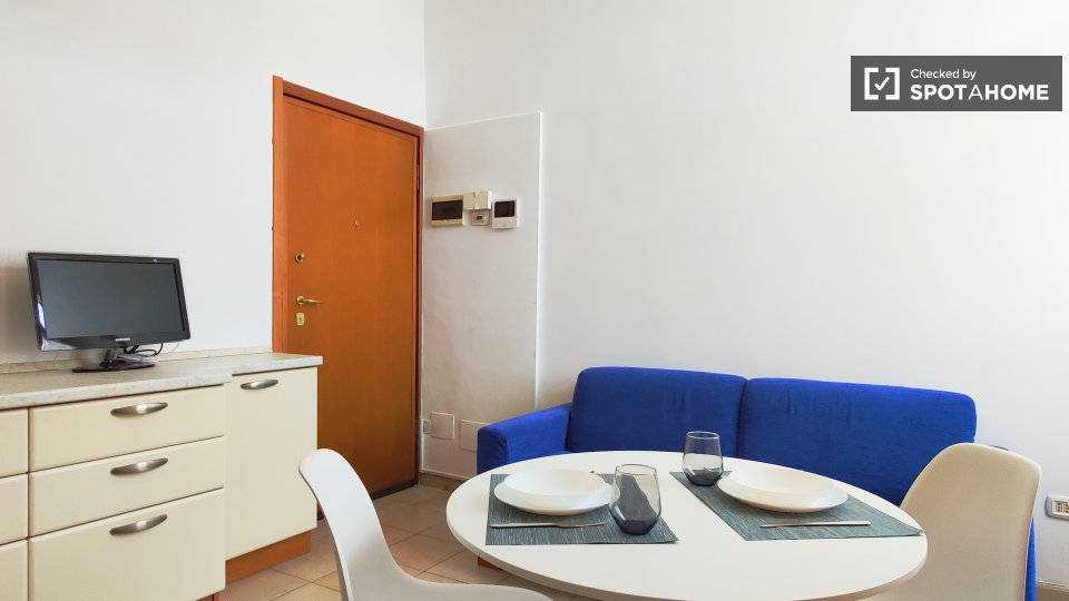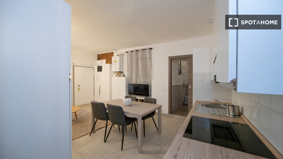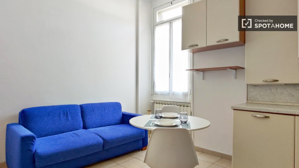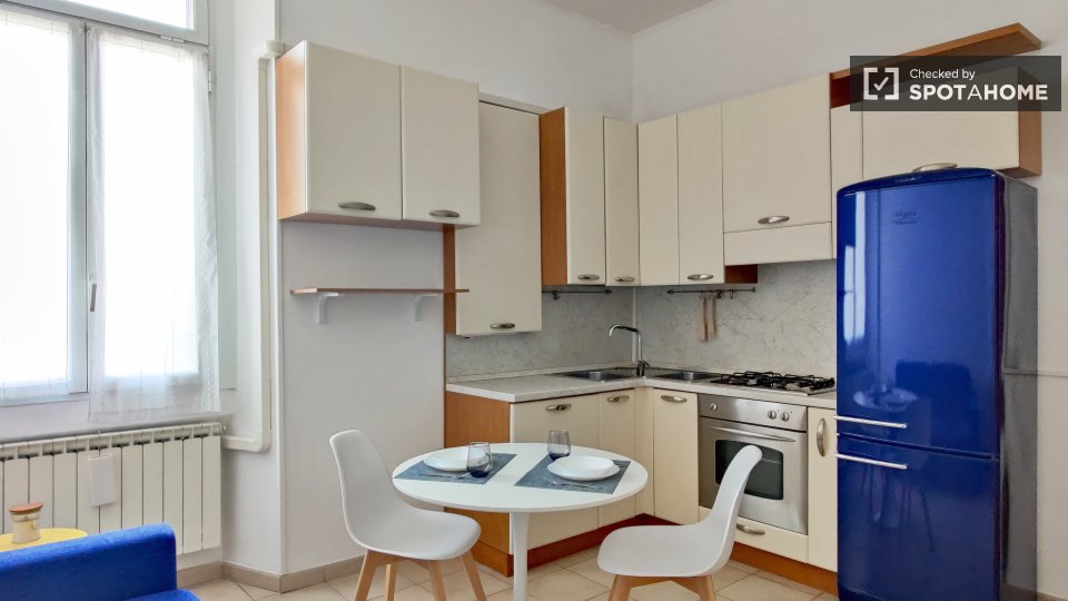 Questo accogliente monolocale in Porta Vigentina, a Milano, è dotato di aria condizionata e riscaldamento autonomi, che lo rendono confortevole tutto l'anno. Completamente arredato, include lavatrice privata, TV e cucina con lavastoviglie e asciug...