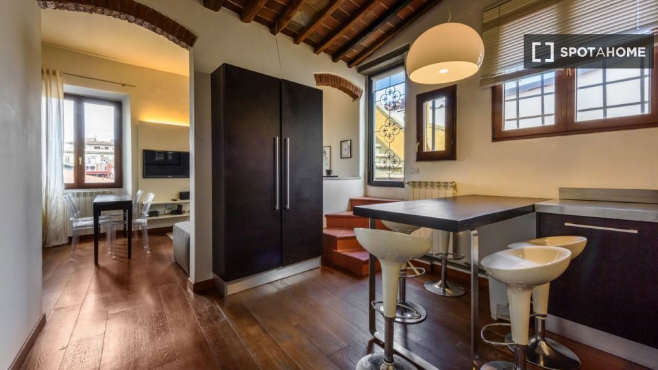 Questo monolocale arredato in Oltrarno-San Frediano è perfetto per chi cerca un alloggio confortevole e ben attrezzato. Il monolocale dispone di aria condizionata individuale, riscaldamento elettrico singolo e cucina completamente attrezzata con a...