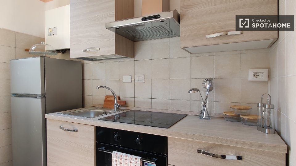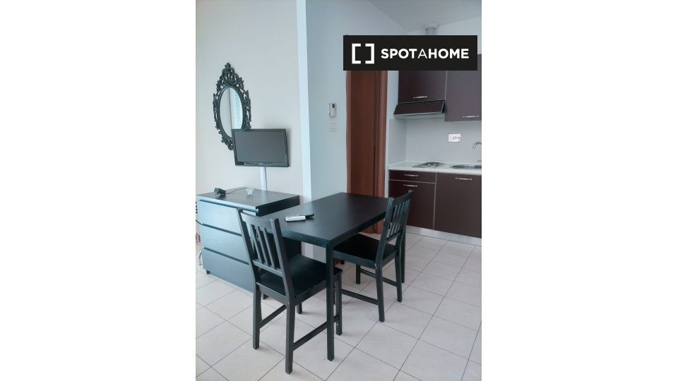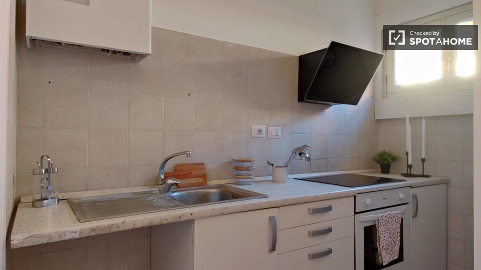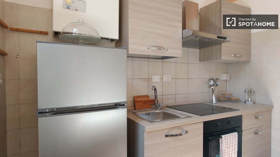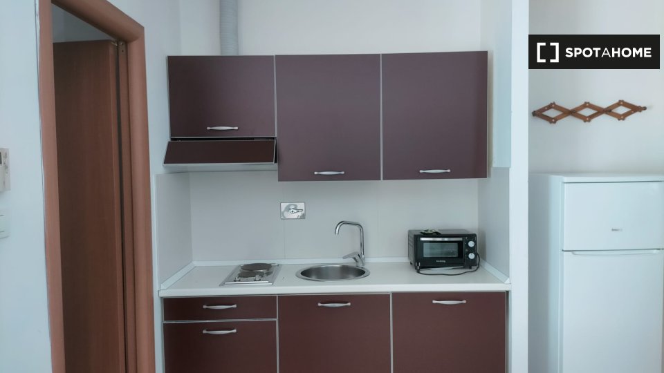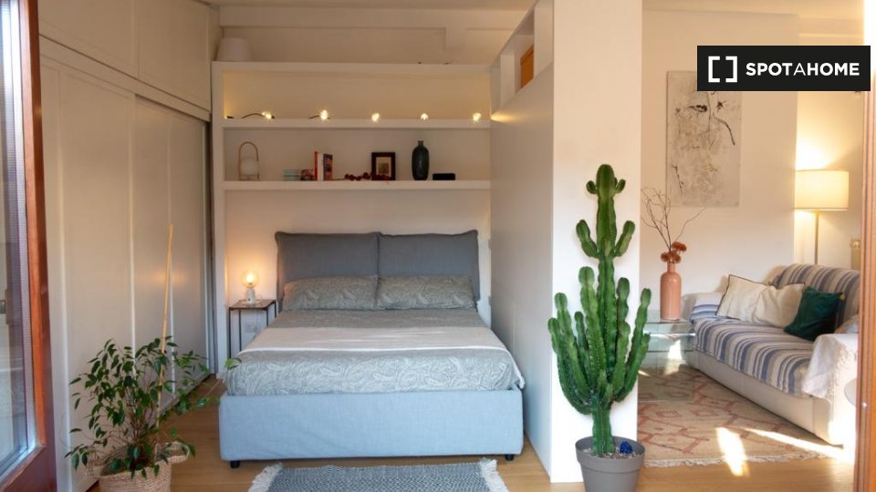 Scopri questo grazioso monolocale situato nel quartiere Gordiani di Roma. L'appartamento è arredato, dotato di aria condizionata individuale, balcone e cucina attrezzata. Tutte le utenze sono incluse e la biancheria da letto è fornita. L'edificio ...