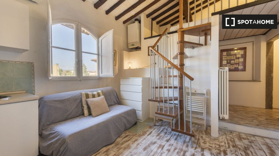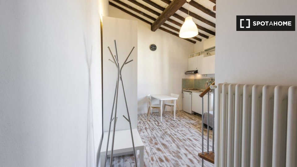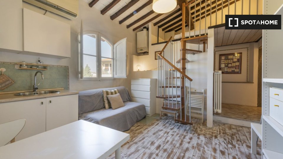 Questo spazioso loft vicino alla stazione della metropolitana Lodi è suddiviso su due piani. Il piano terra dispone di un ampio soggiorno con cucina, due divani e un televisore. Sullo stesso piano l'appartamento è dotato anche di uno spazio estern...