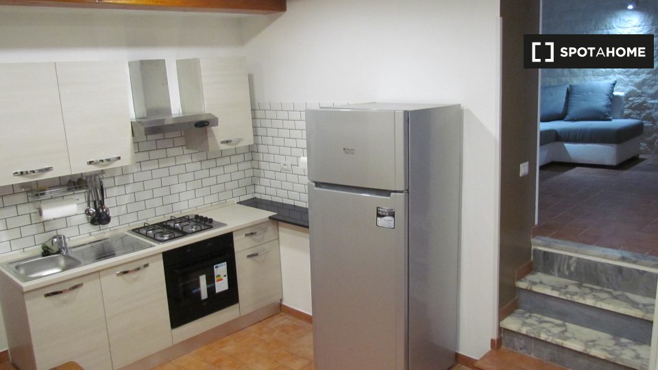 Questo monolocale arredato a Tuscolano Nord offre aria condizionata autonoma, riscaldamento centralizzato e una cucina ben attrezzata con lavastoviglie e forno. L'alloggio dispone di balcone o terrazza e di una lavatrice comune in loco. È vietato ...