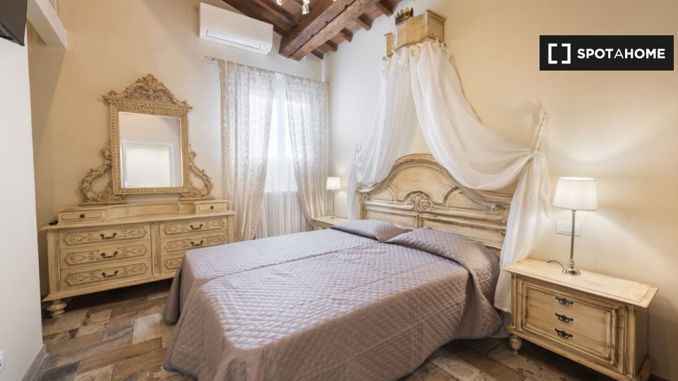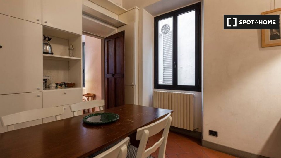 Questo appartamento con una camera da letto nel Rione Parione, a Roma, è arredato e dispone di riscaldamento a gas naturale. La cucina è attrezzata, è consentito fumare e le coppie sono benvenute. Godetevi l'accesso privato a una lavatrice e a una...