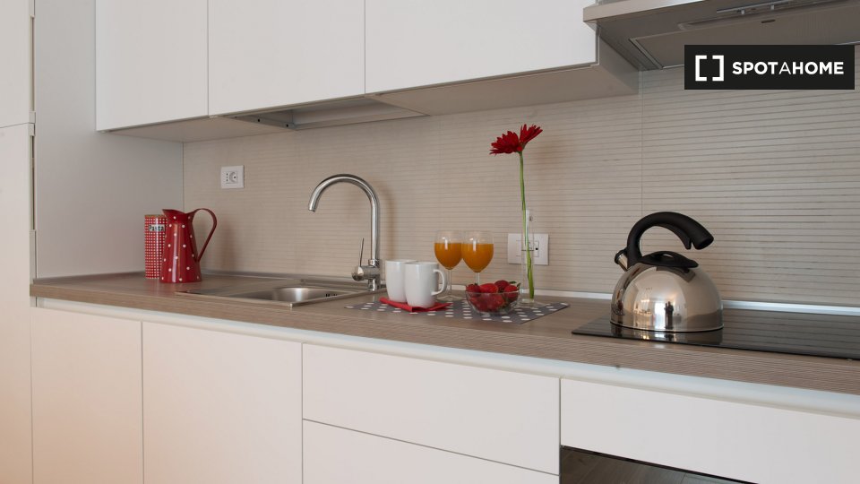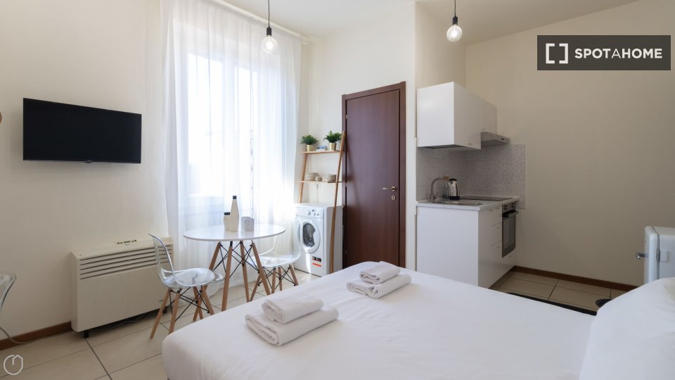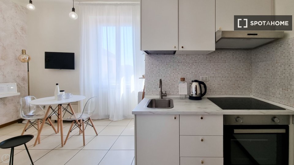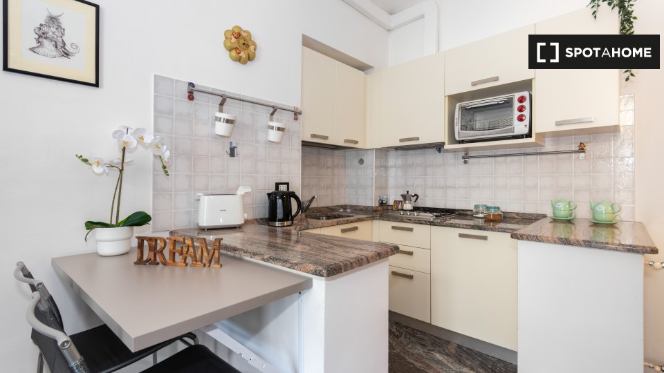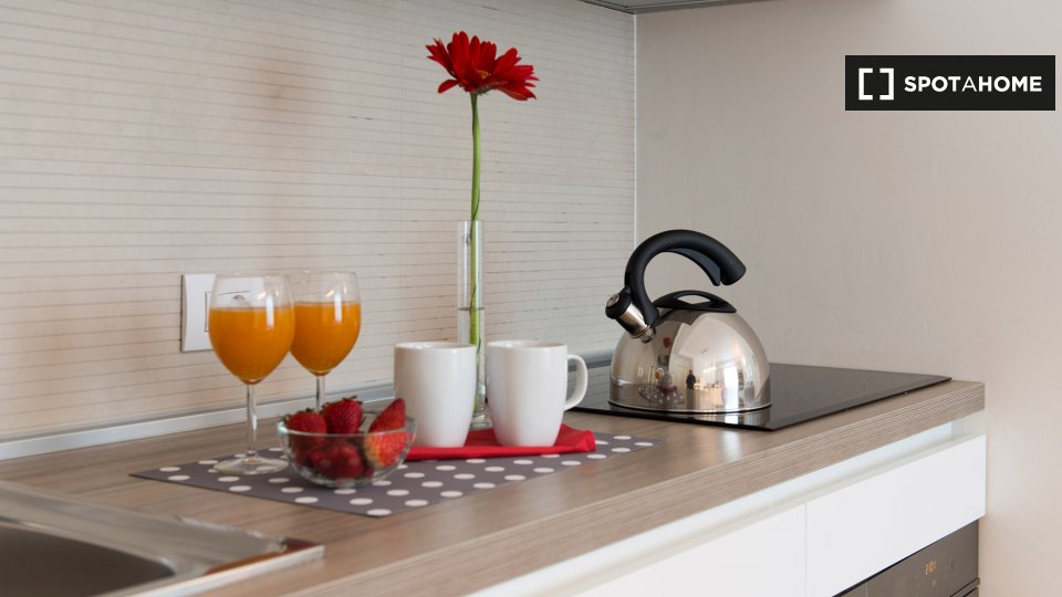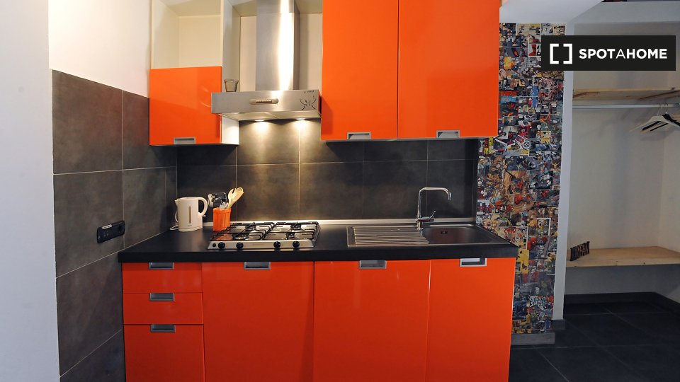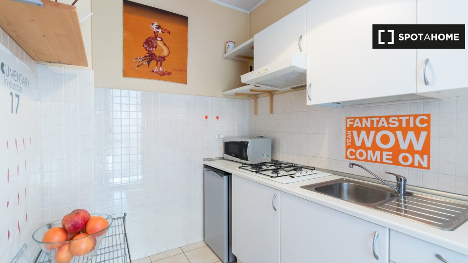 Open space al 4° piano, comodo e luminoso, in una zona strategica della città, ben collegata al centro e alle principali attrazioni turistiche. L'angolo cottura è completo di accessori, stoviglie, stoviglie ed elettrodomestici: piano cottura a ind...