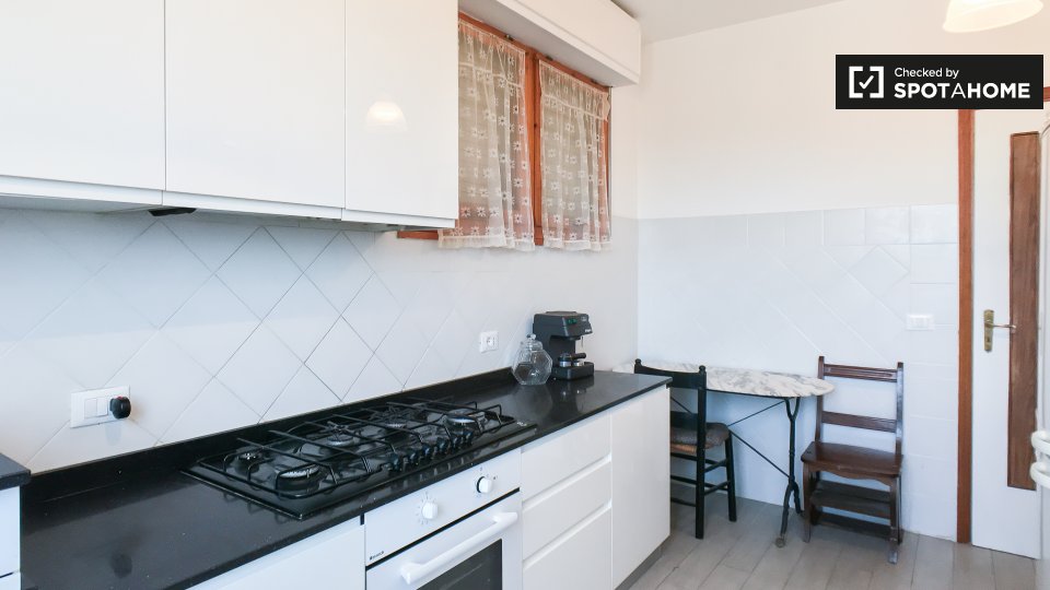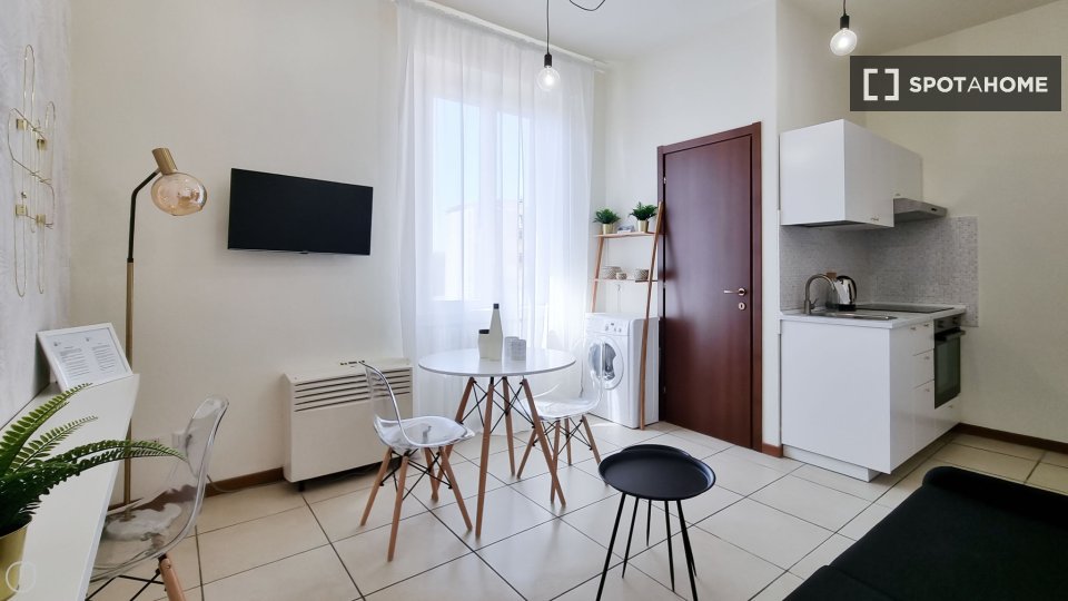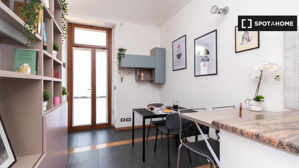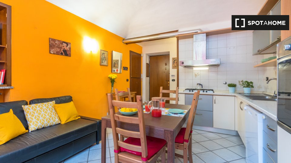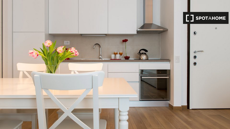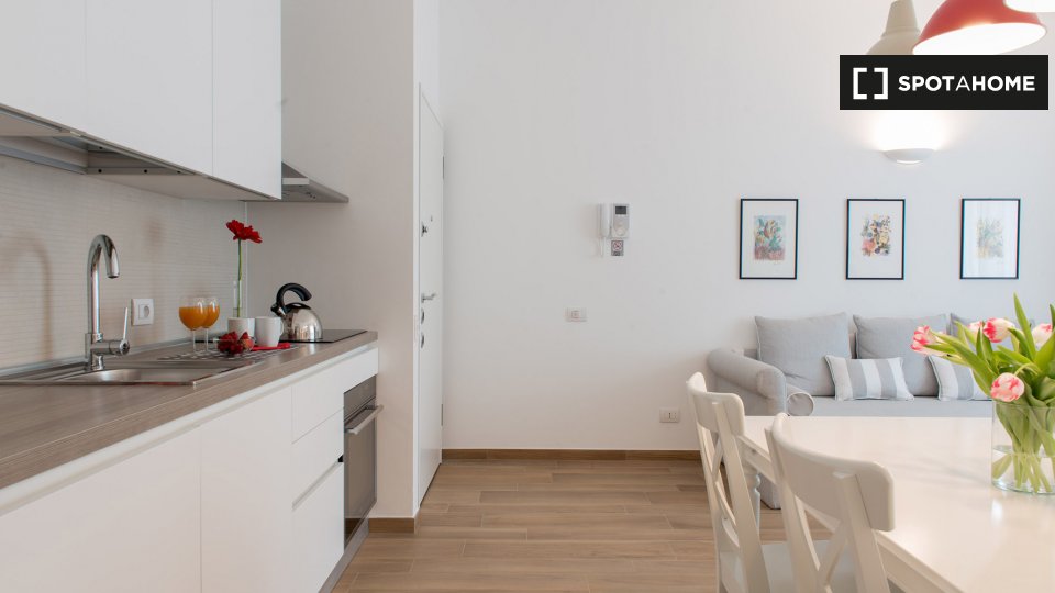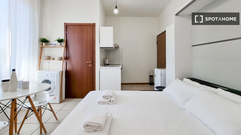 Open space al 4° piano, comodo e luminoso, in una zona strategica della città, ben collegata al centro e alle principali attrazioni turistiche. L'angolo cottura è completo di accessori, stoviglie, stoviglie ed elettrodomestici: piano cottura a ind...