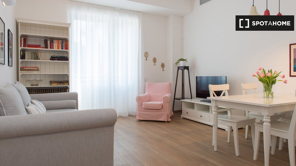 Questo affascinante appartamento con 1 camera da letto in affitto a Moscova ha un arredamento luminoso e arioso e una camera da letto matrimoniale. Il soggiorno ha anche un divano letto che può ospitare un ospite in più. Hai accesso ad una lavatri...