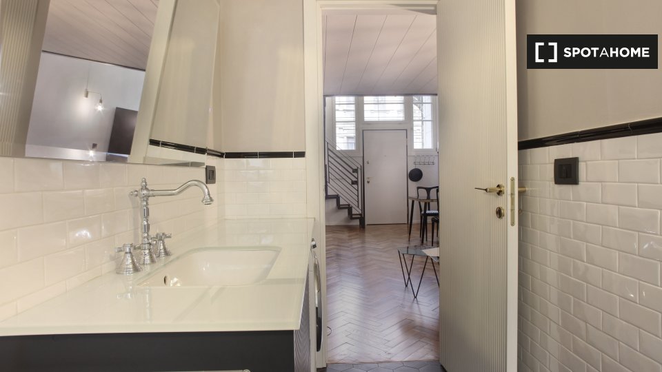 Elegante e nuovo bilocale mansardato di circa 50 mq sito al piano rialzato di una palazzina signorile e finemente ristrutturata. L'appartamento si caratterizza per l'eleganza degli arredi, la ricercatezza dei materiali e gli accostamenti di colori...