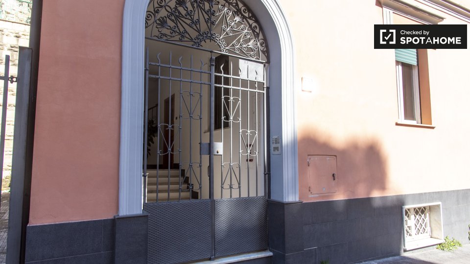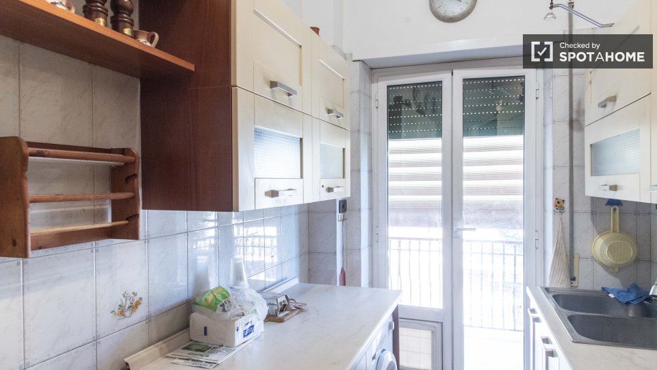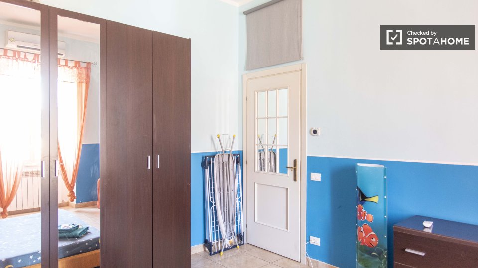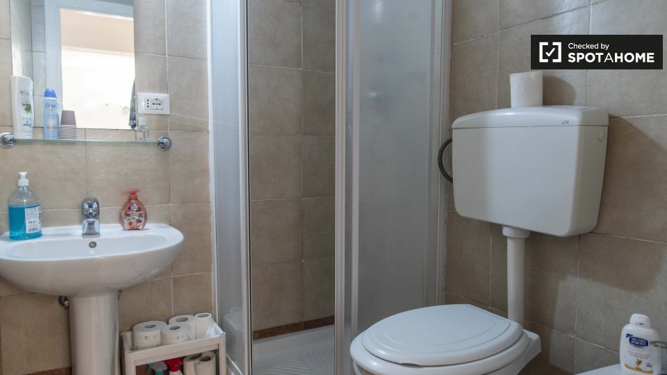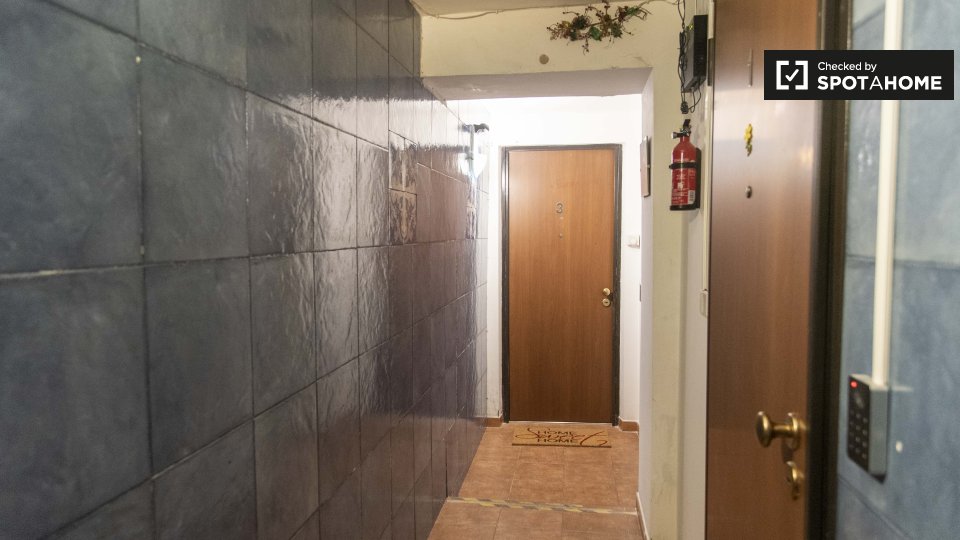 Questa camera in un appartamento condiviso con 2 camere da letto nel quartiere Casal de' Pazzi Ponte Mammolo di Roma offre un'esperienza di vita affascinante e confortevole. Completamente arredato, include comfort come riscaldamento a gas naturale...
