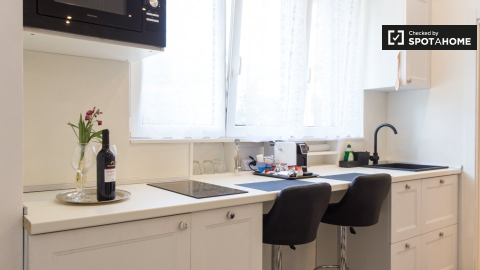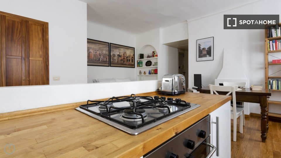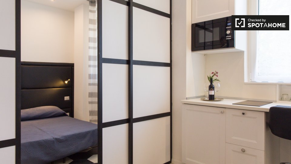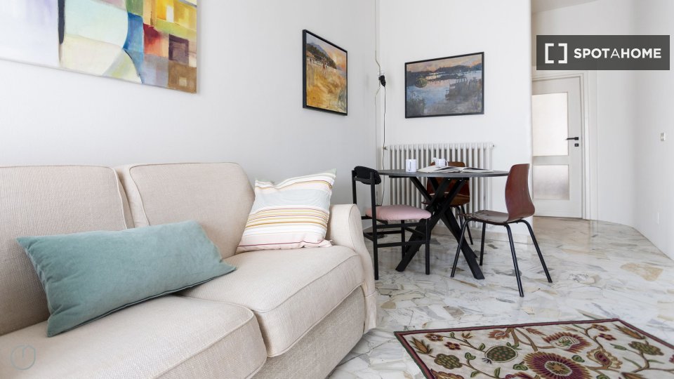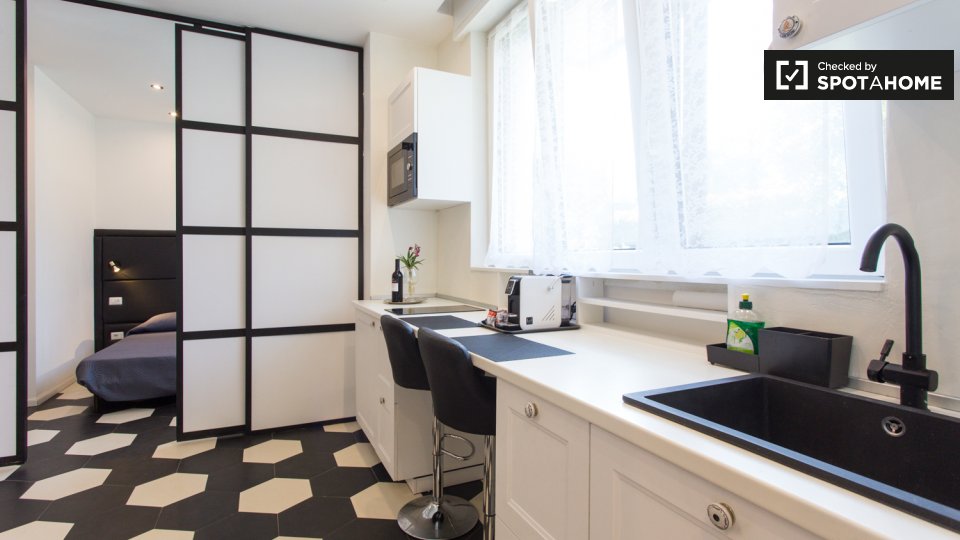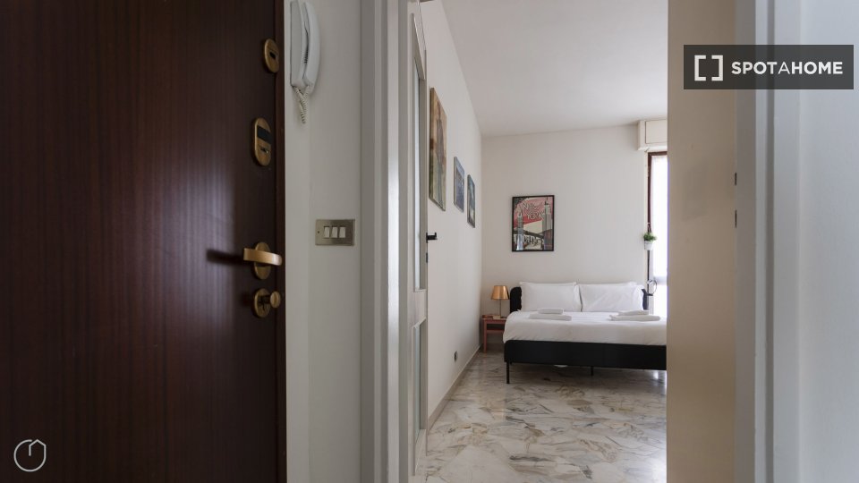 Scopri un accogliente appartamento con una camera da letto completamente arredato a Bande Nere, Milano. La proprietà è dotata di aria condizionata centralizzata, TV e cucina ben attrezzata con forno e lavatrice in comune. Le famiglie sono benvenut...