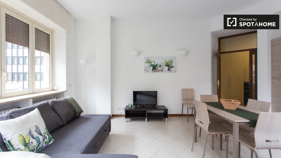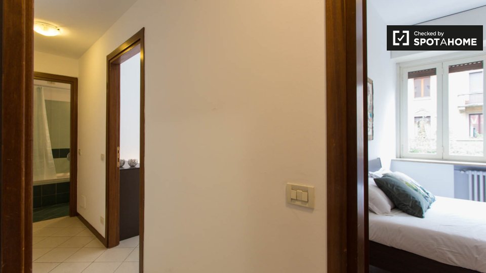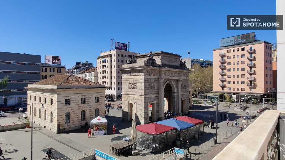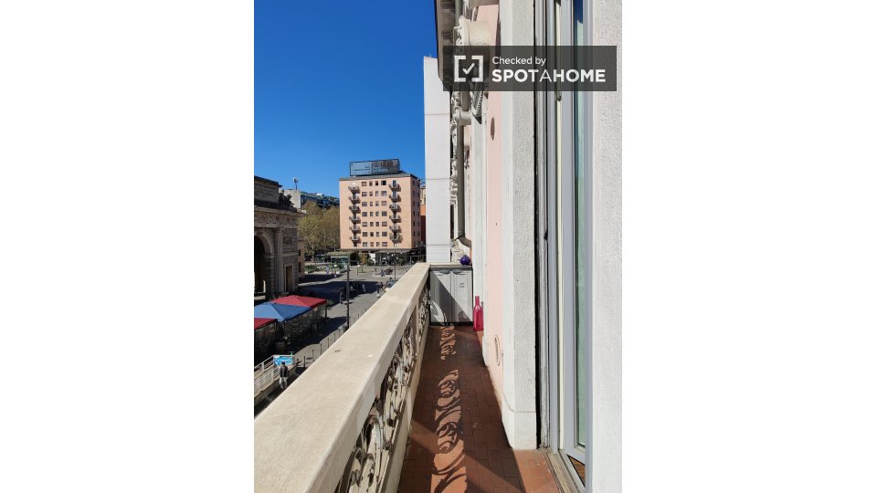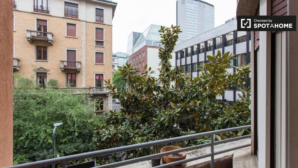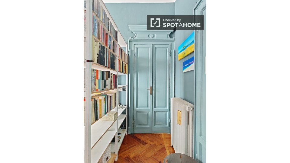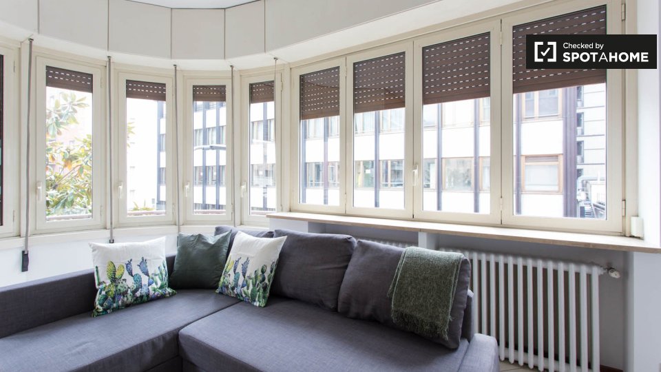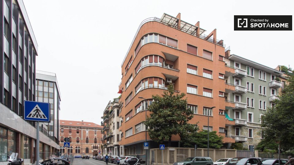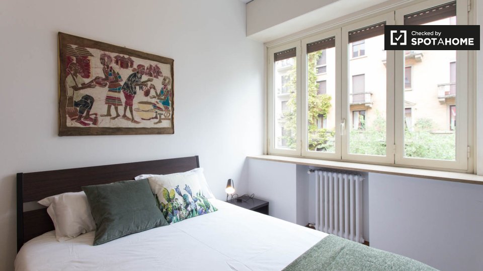 Le camere soleggiate sono disponibili per l'affitto in una grande appartamento con aria condizionata a Porta Venezia. La struttura dispone di un elegante soggiorno con deliziosi pavimenti in piastrelle, dove potrete rilassarvi su 1 dei comodi diva...