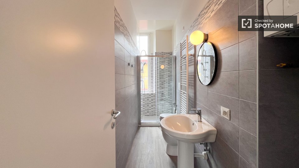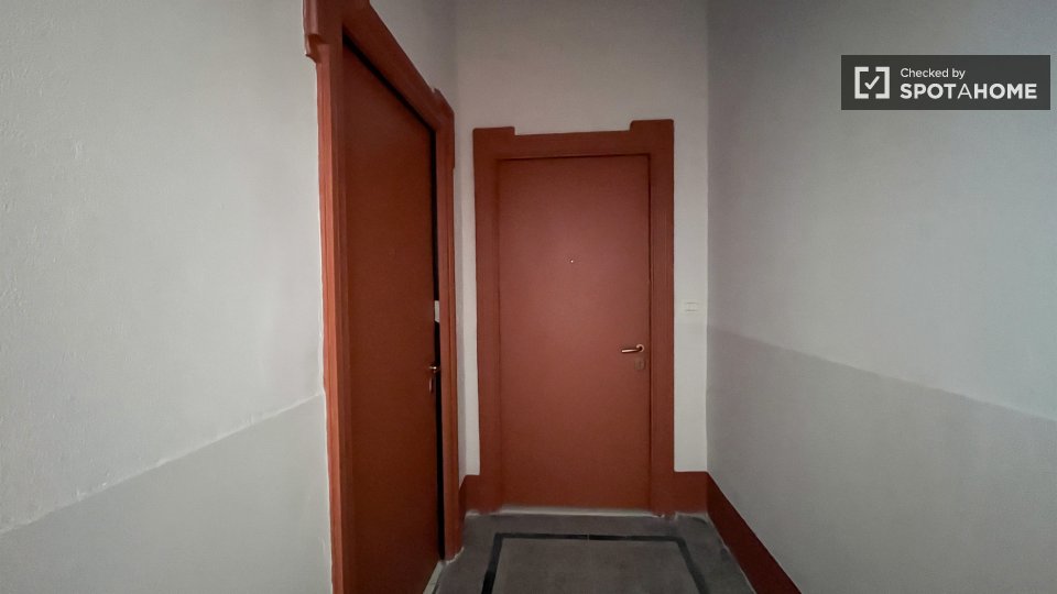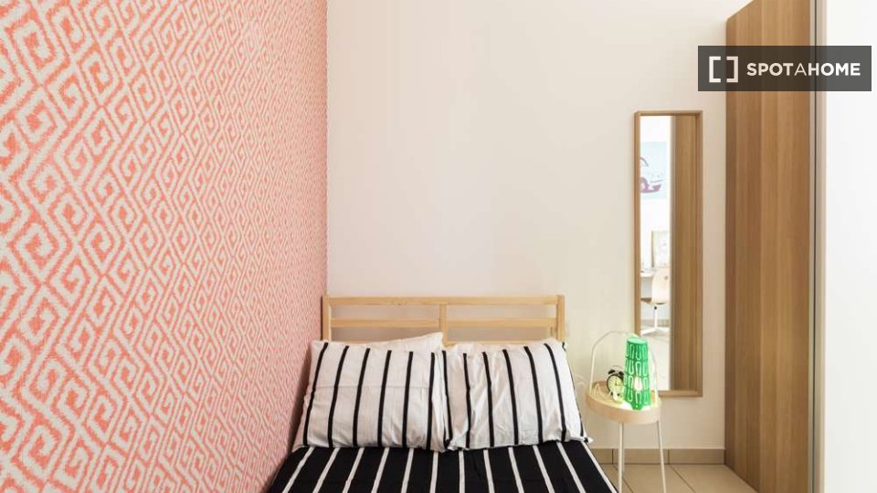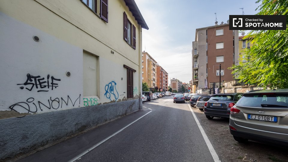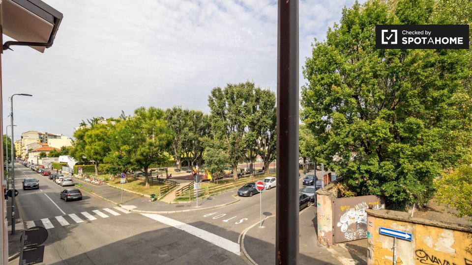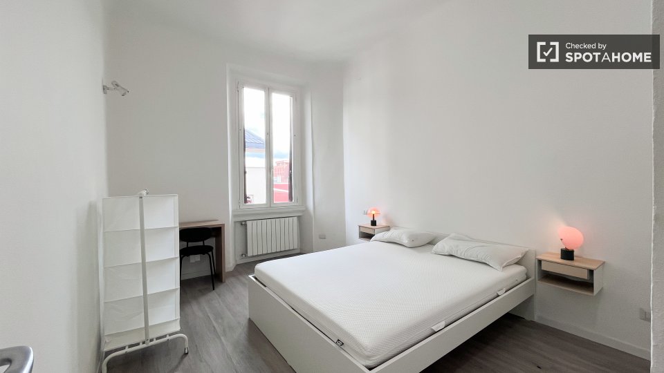 Questa è una stanza con vista esterna in un appartamento condiviso con 2 camere da letto in affitto a Lodi-Corvetto, Milano. L'appartamento è completamente arredato e include comfort come riscaldamento centralizzato, lavatrice privata, lavastovigl...