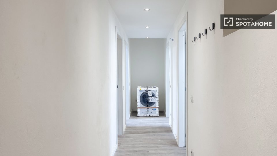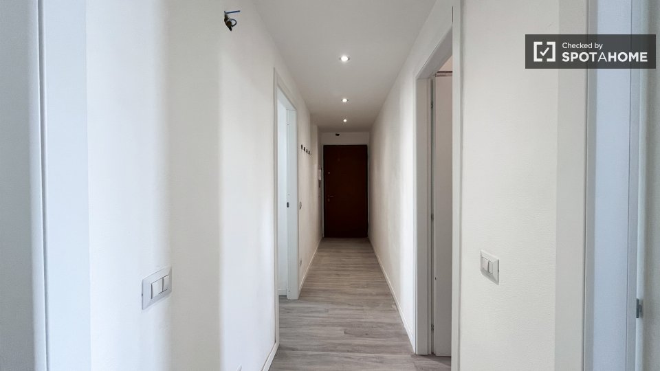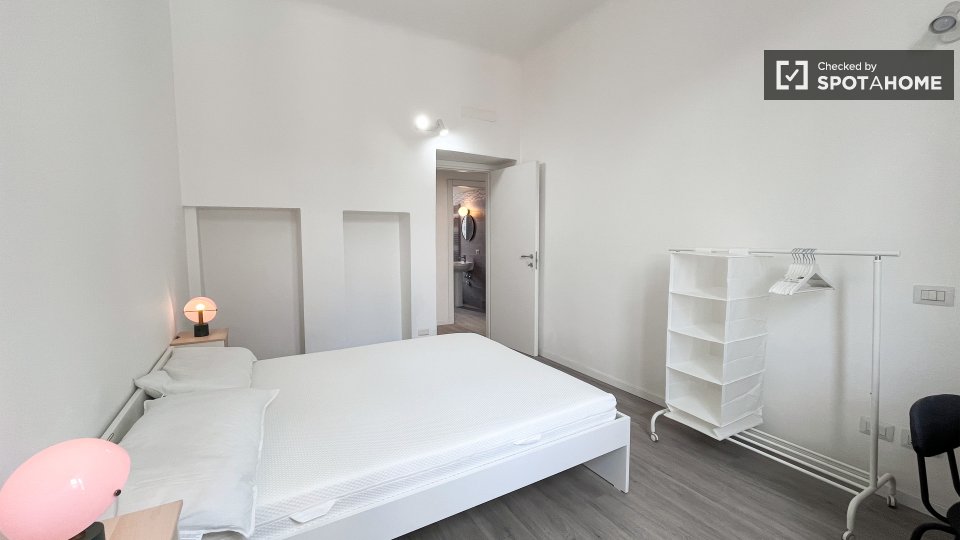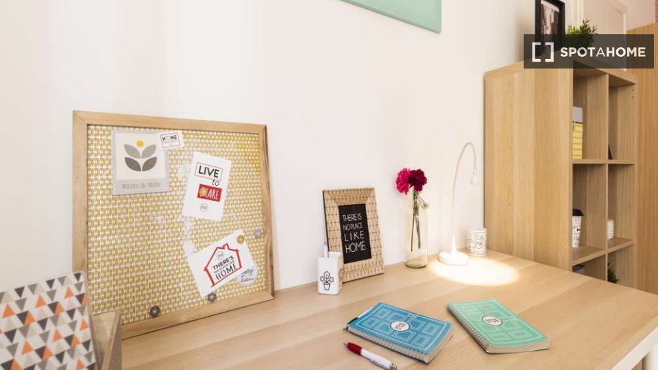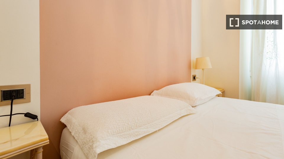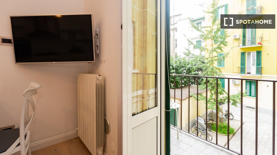 Questa è una stanza con vista esterna in un appartamento condiviso con 2 camere da letto in affitto a Lodi-Corvetto, Milano. L'appartamento è completamente arredato e include comfort come riscaldamento centralizzato, lavatrice privata, lavastovigl...