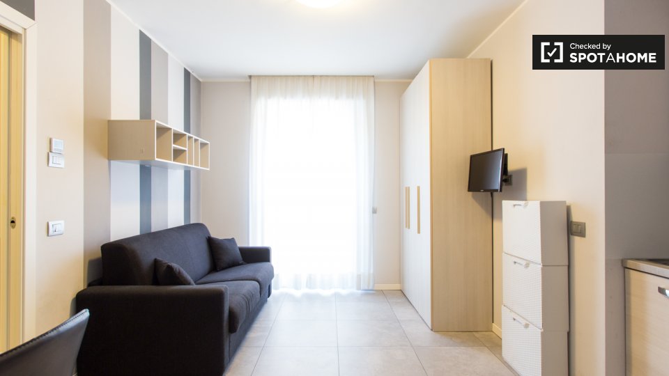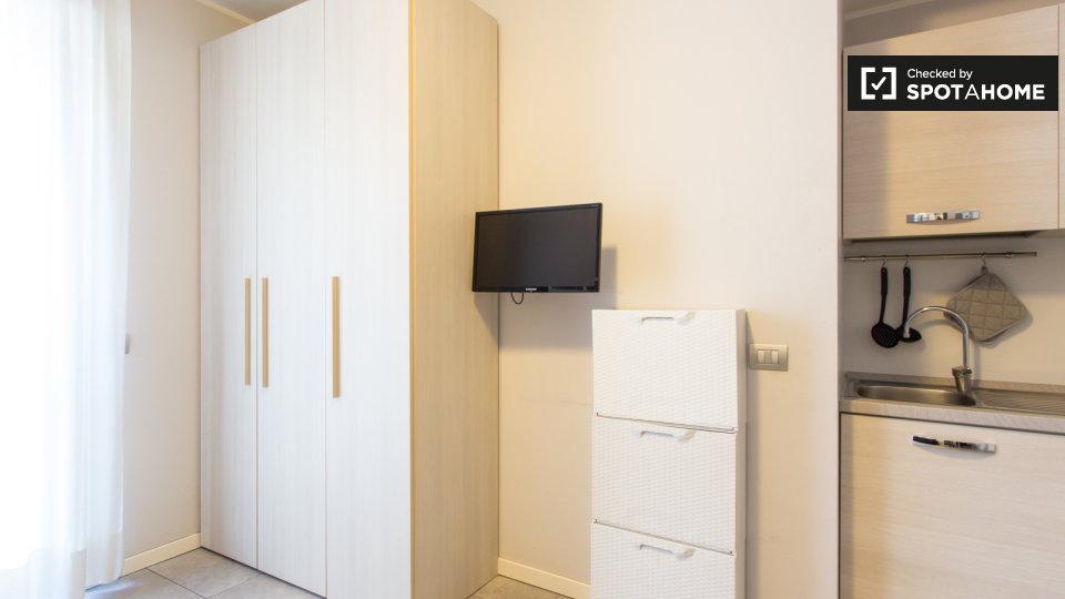 Questo grazioso monolocale in Bovisa, a Milano, è completamente arredato e progettato per offrire un soggiorno confortevole. Dispone di aria condizionata regolabile autonomamente, riscaldamento elettrico e cucina attrezzata. Il monolocale è perfet...