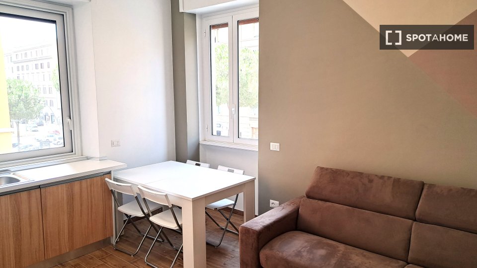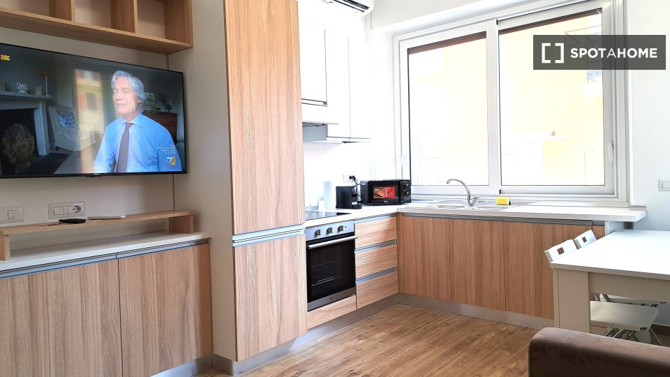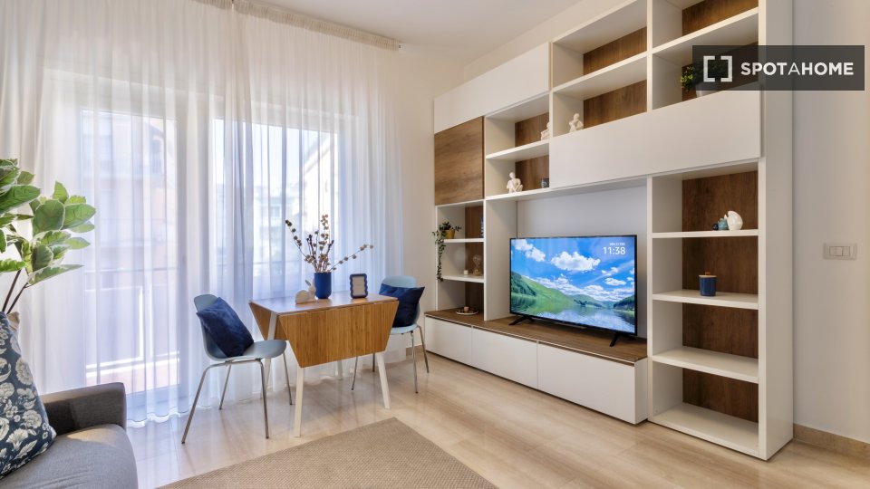 Scopri un moderno appartamento completamente arredato con 2 camere da letto disponibile per l'affitto a Tuscolano Nord, Roma. L'appartamento dispone di cucina attrezzata, lavatrice e asciugatrice private e include tutte le utenze (elettricità, acq...
