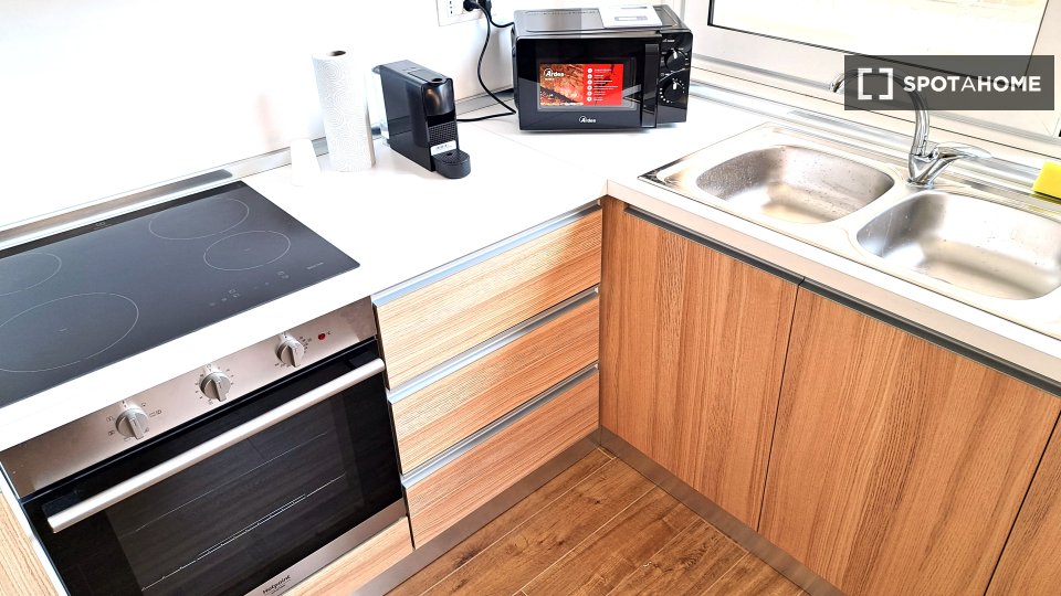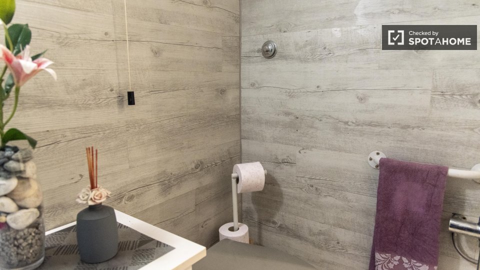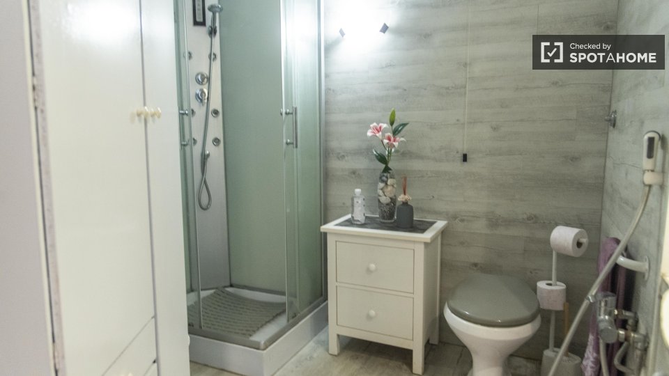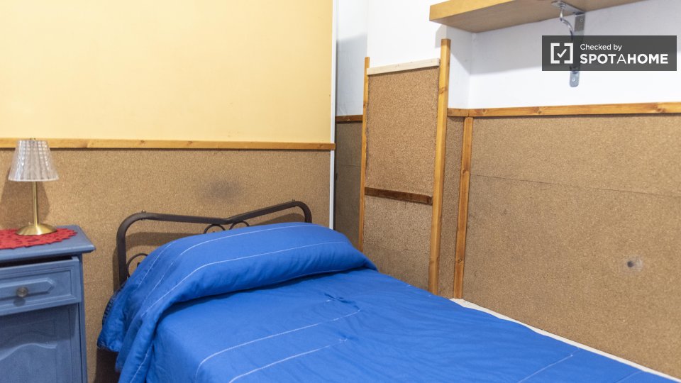 Questa camera calda e accogliente si trova in un appartamento condiviso con 4 camere da letto situato a Torre Angela. Perfettamente arredato e attrezzato per un soggiorno confortevole, questo immobile vanta riscaldamento a gas naturale e servizi c...