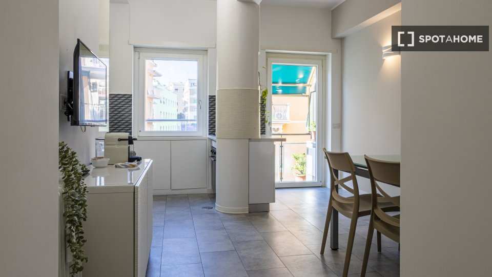 Scopri questo appartamento completamente arredato disponibile per l'affitto a Nomentano, Roma. L'appartamento comprende una cucina attrezzata, un balcone e unità di aria condizionata individuali per il raffreddamento e il riscaldamento. Spotahome ...