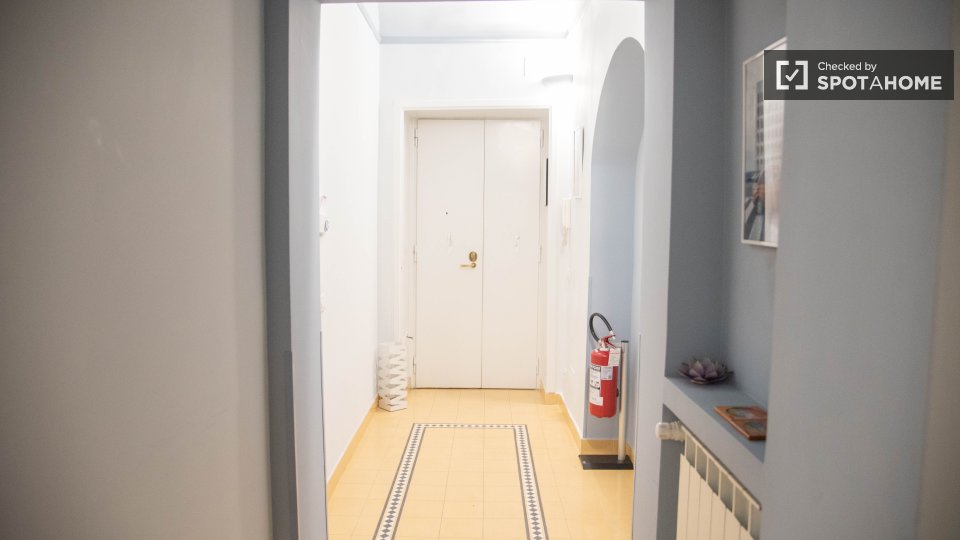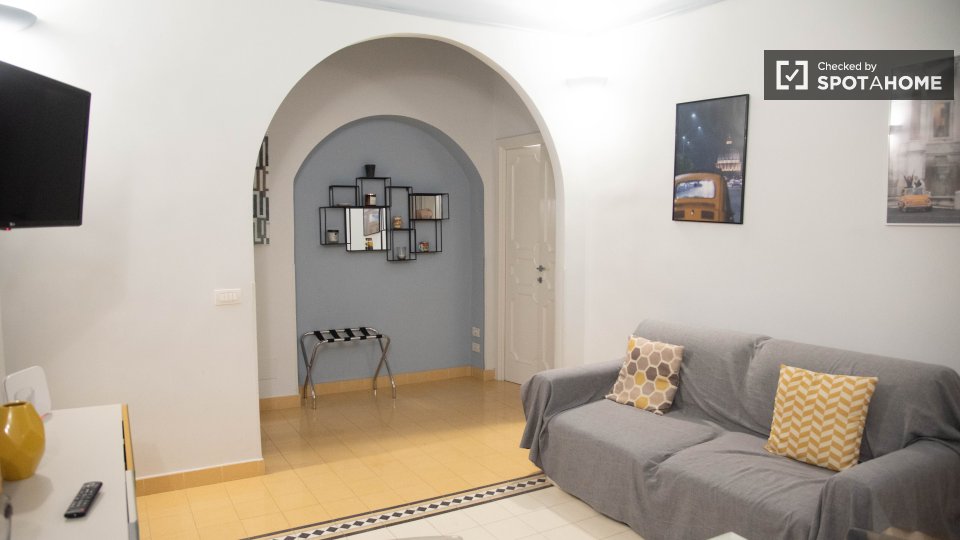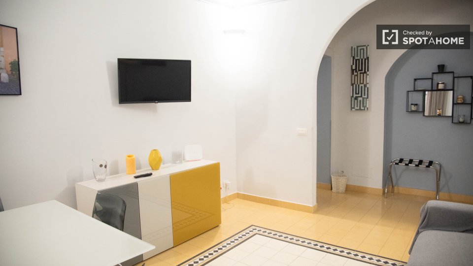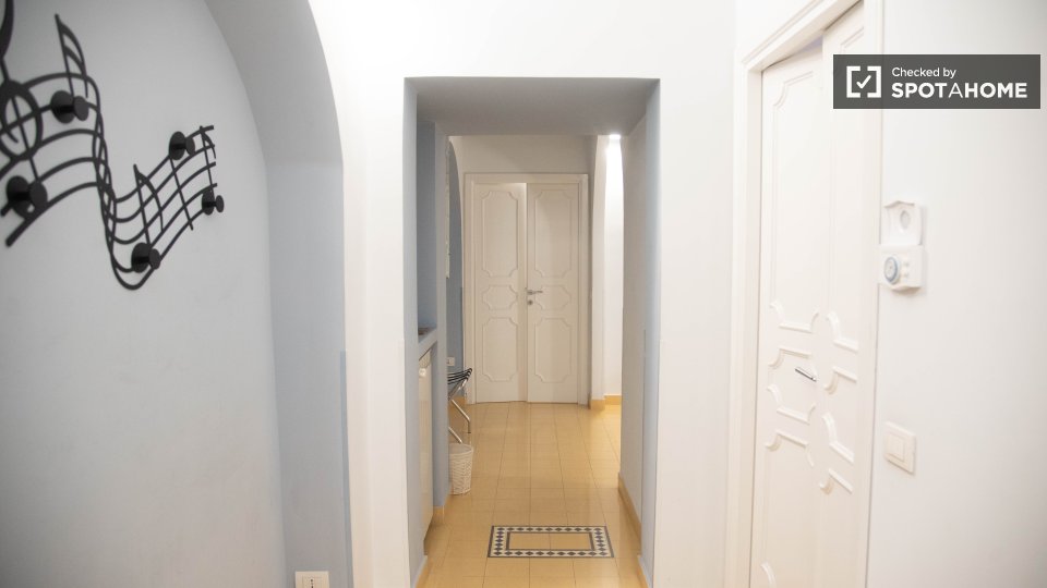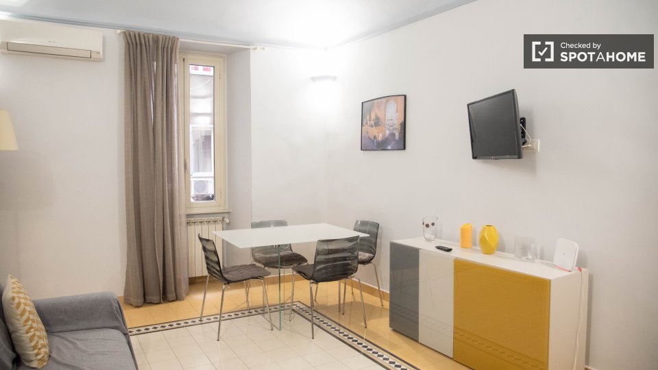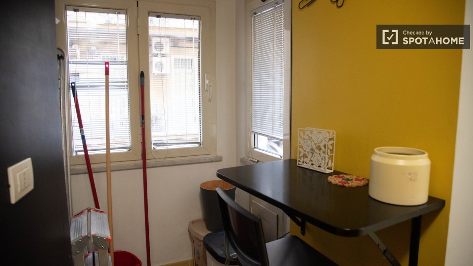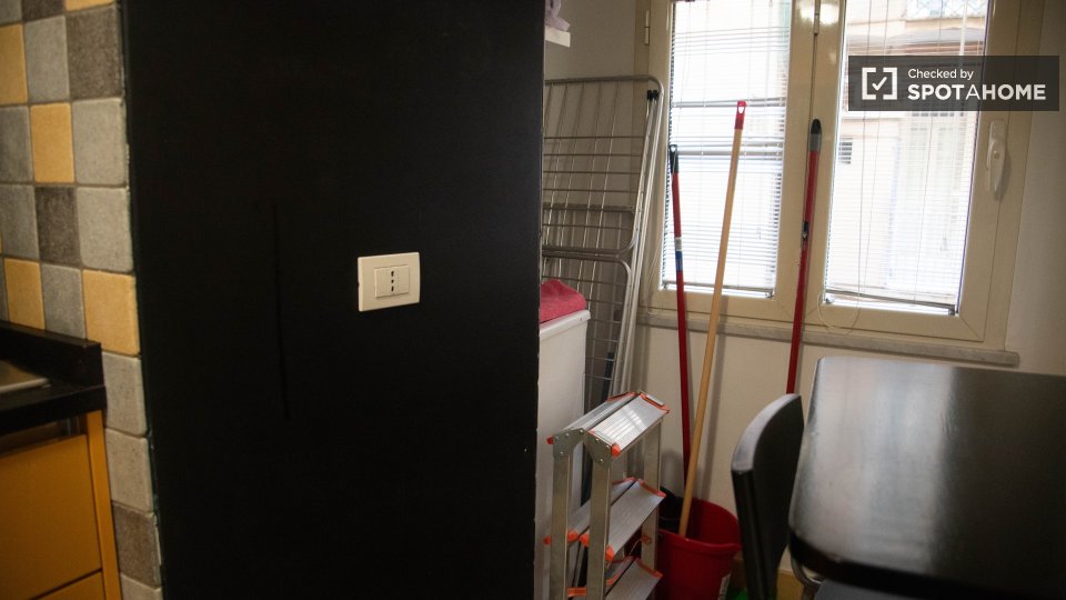 Questo appartamento con una camera da letto nel Rione Castro Pretorio, a Roma, offre uno spazio abitativo completamente arredato e dotato di comfort essenziali per un soggiorno confortevole. L'appartamento include lavatrice, aria condizionata con ...