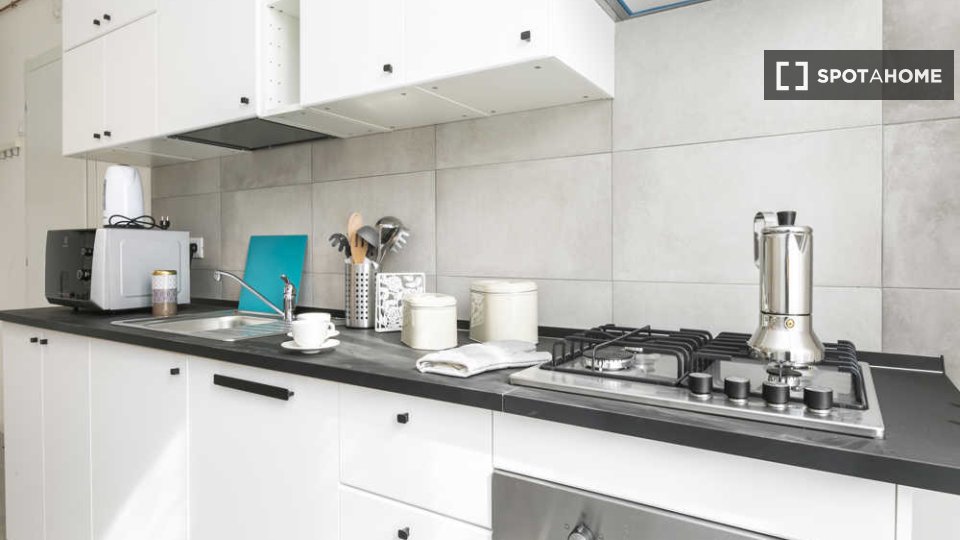 Questa stanza in un appartamento condiviso con 2 camere da letto a Tuscolano Nord, Roma, offre uno spazio arredato con aria condizionata individuale e riscaldamento a gas naturale. L'appartamento dispone di una cucina completamente attrezzata con ...