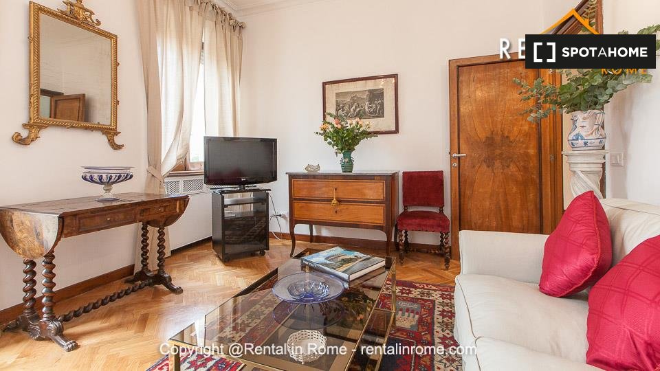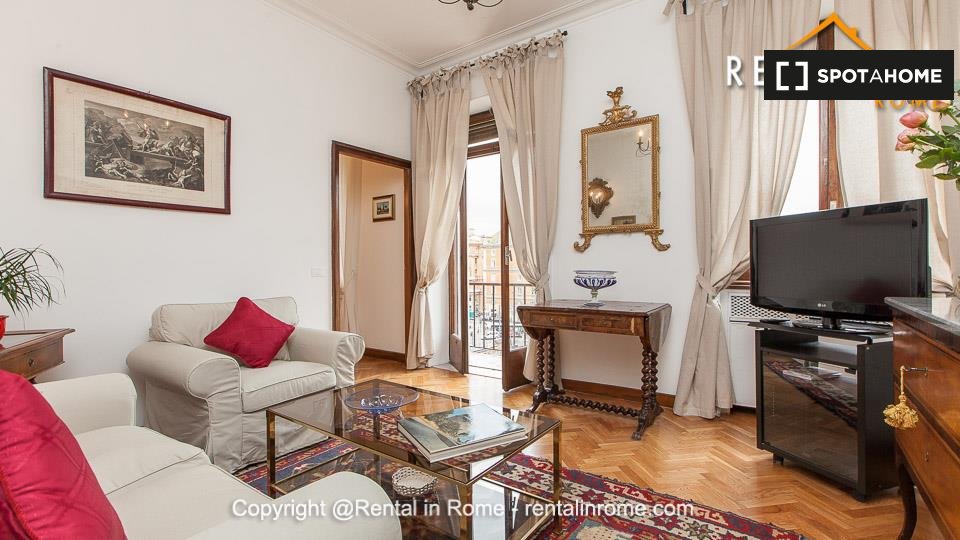 Appartamento arredato con 2 camere da letto in affitto in Via Di S. Nicola De' Cesarini. L'immobile si trova al 5° piano di un edificio con ascensore.